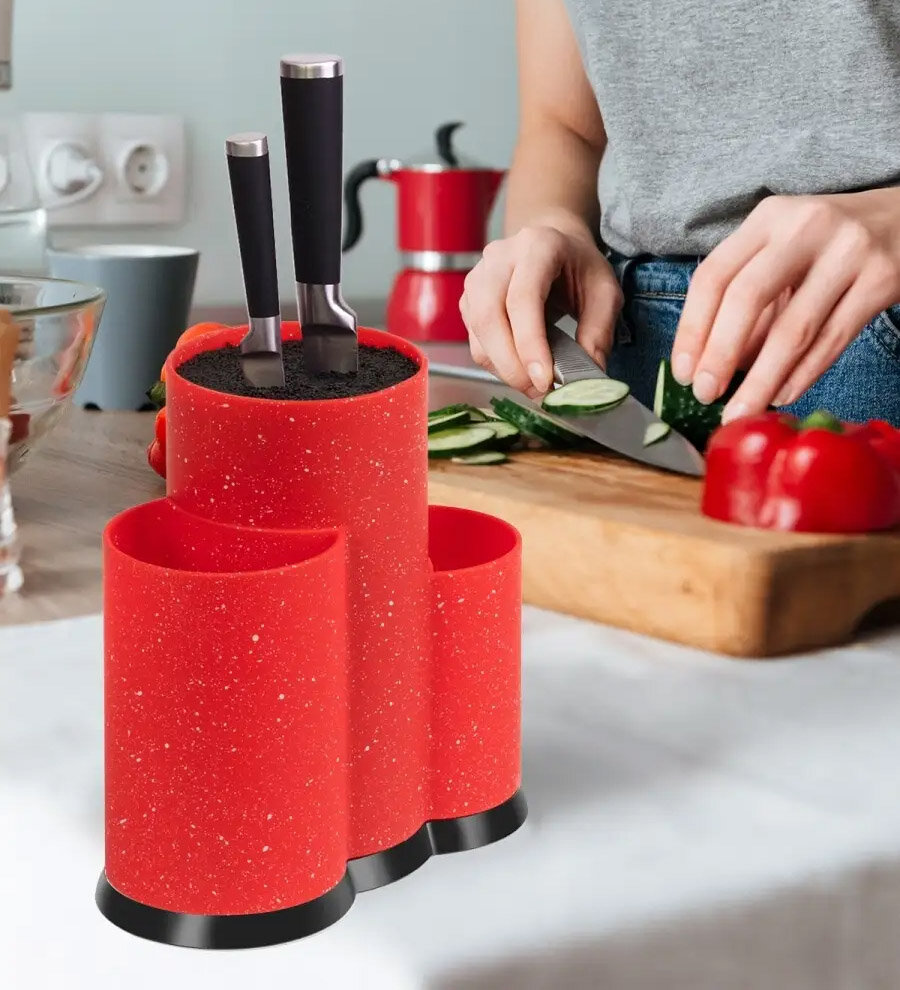 10 цен на Подставка для ножей и столовых приборов WILKER 23х22х11 см тройная, красный гранит мрамор