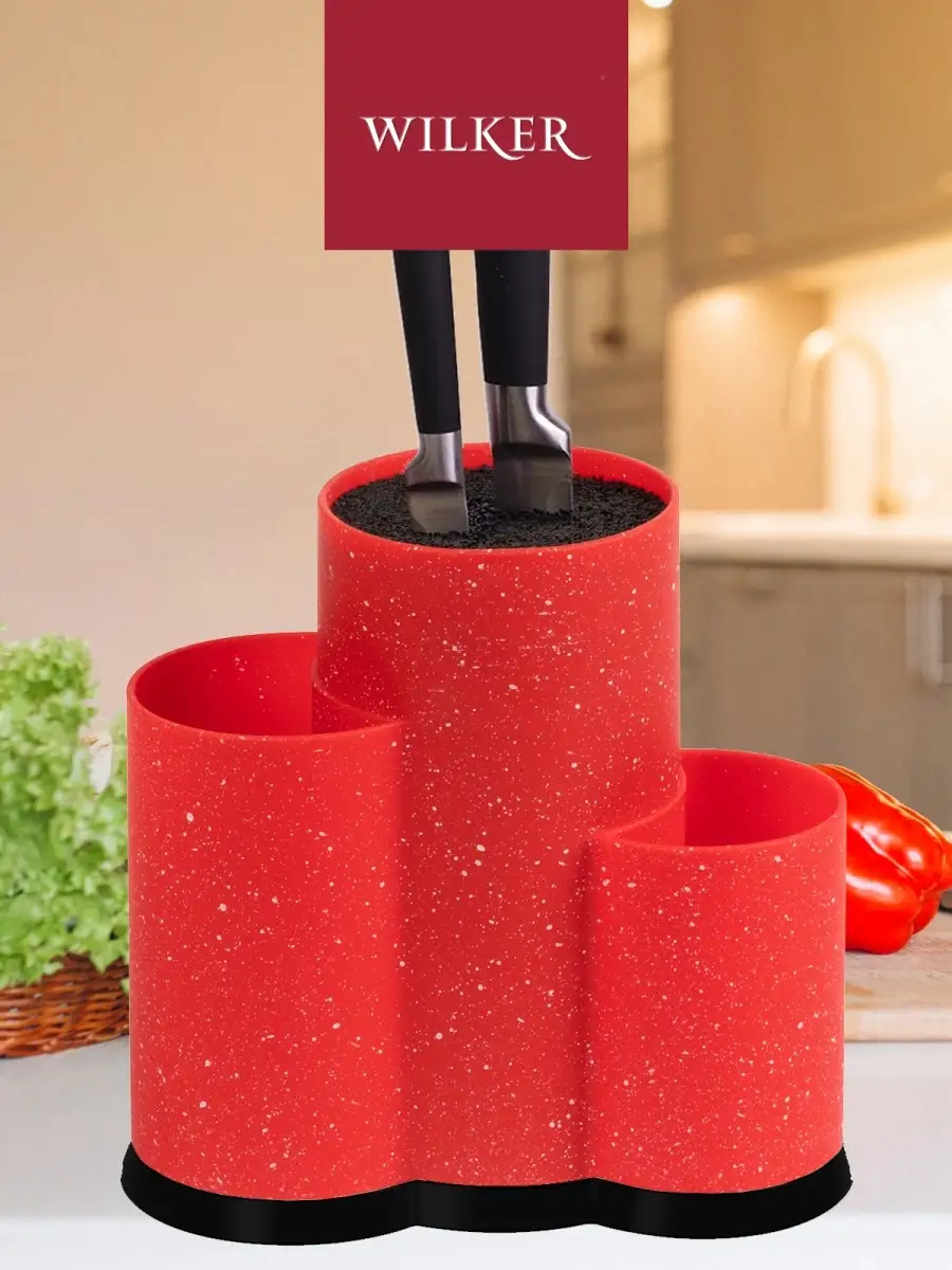 Отзывы на Подставка для ножей и столовых приборов WILKER 23х22х11 см тройная, красный гранит мрамор