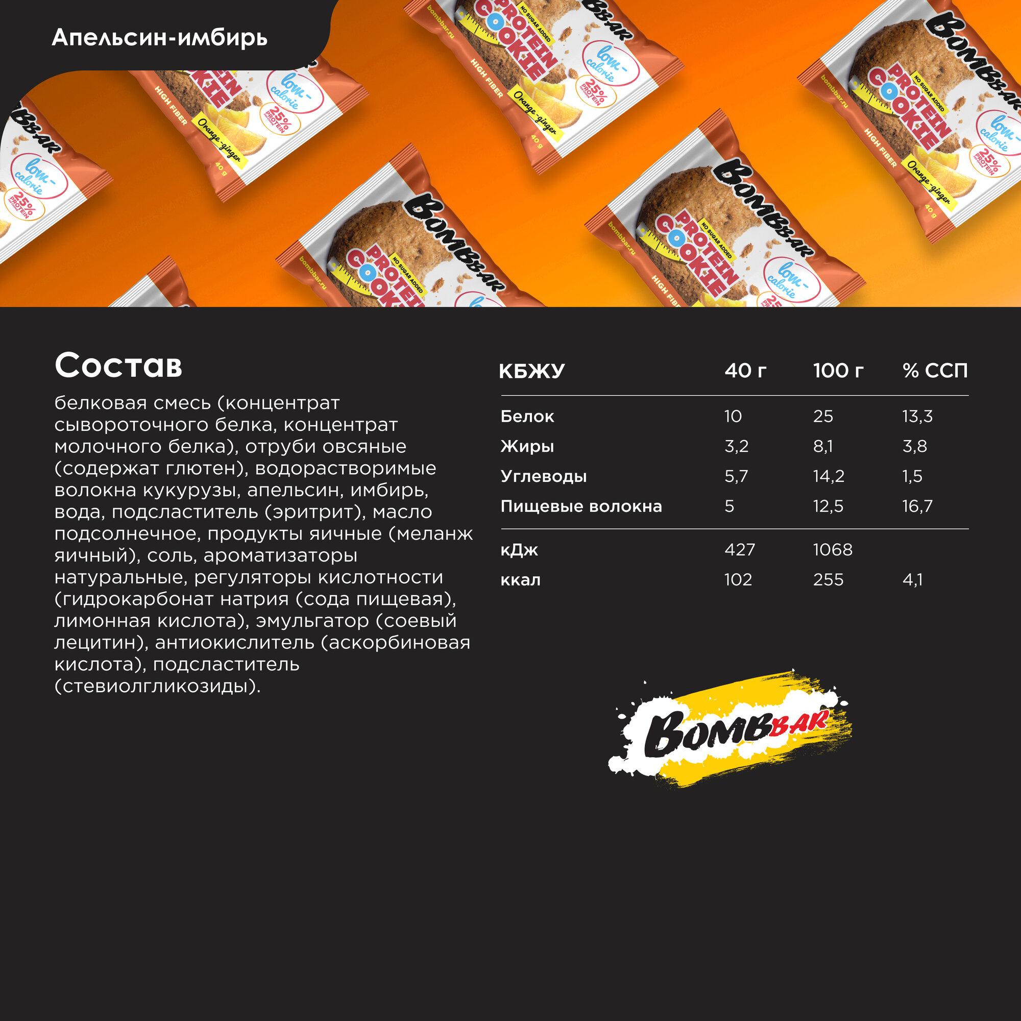 Протеиновое печенье Bombbar низкокалорийное без сахара "Ассорти", 7 вкусов, 12шт х 40г информация: