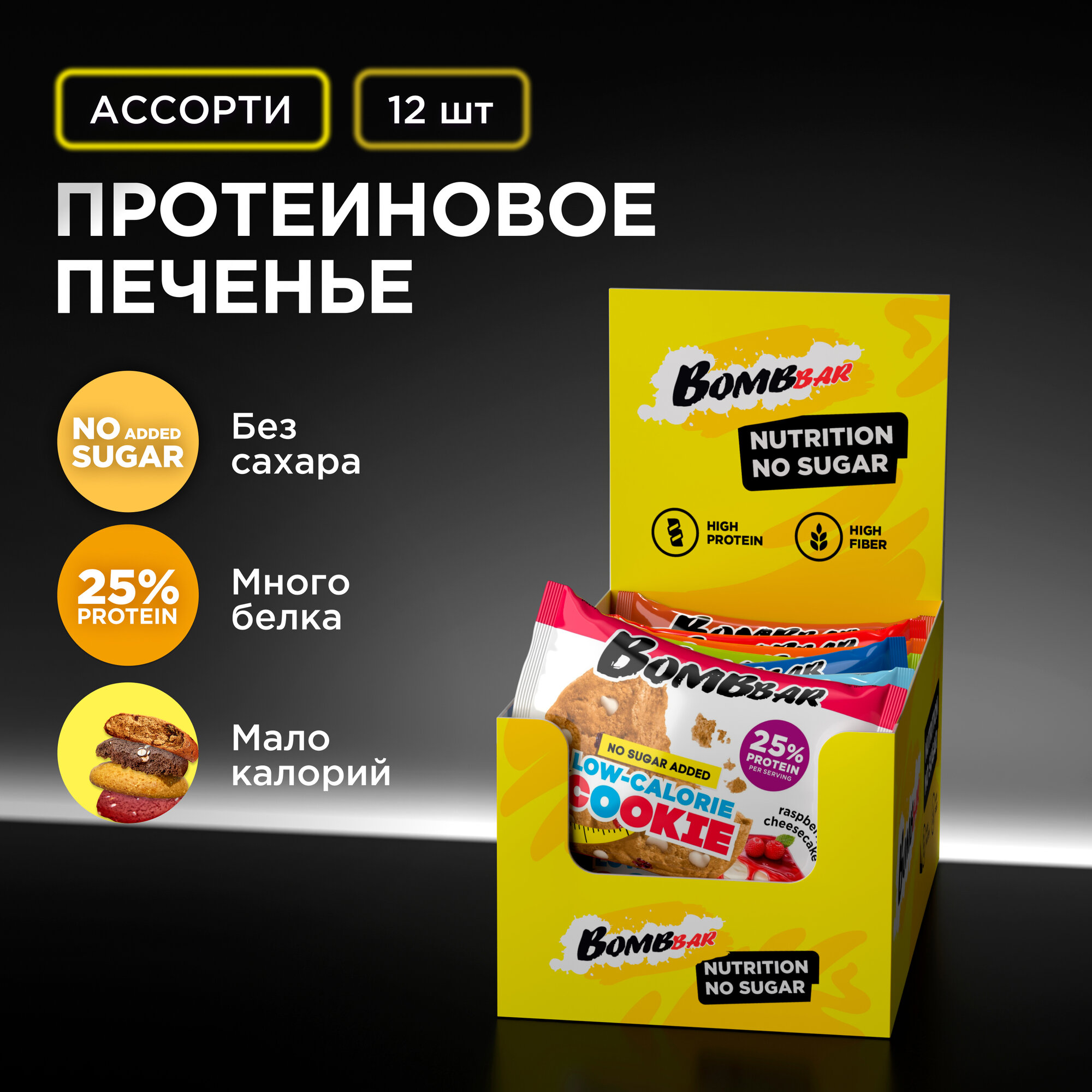 10 цен на Протеиновое печенье Bombbar низкокалорийное без сахара "Ассорти", 7 вкусов, 12шт х 40г