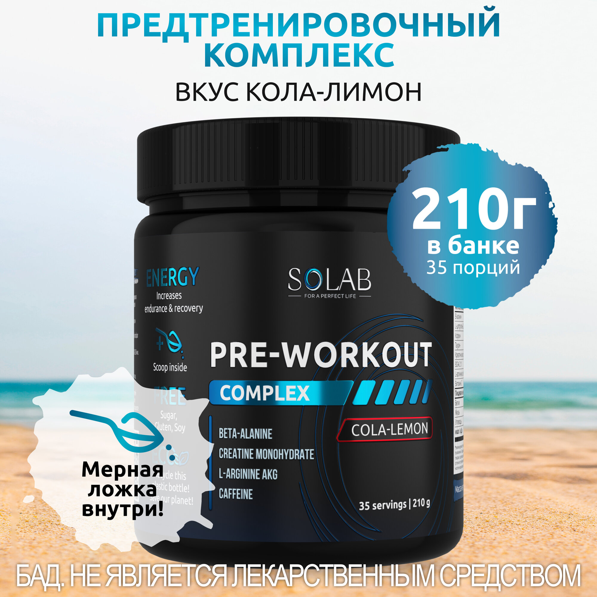 10 цен на SOLAB Предтренировочный комплекс энергетик Pre-workout, вкус Кола-Лимон, 35 порций