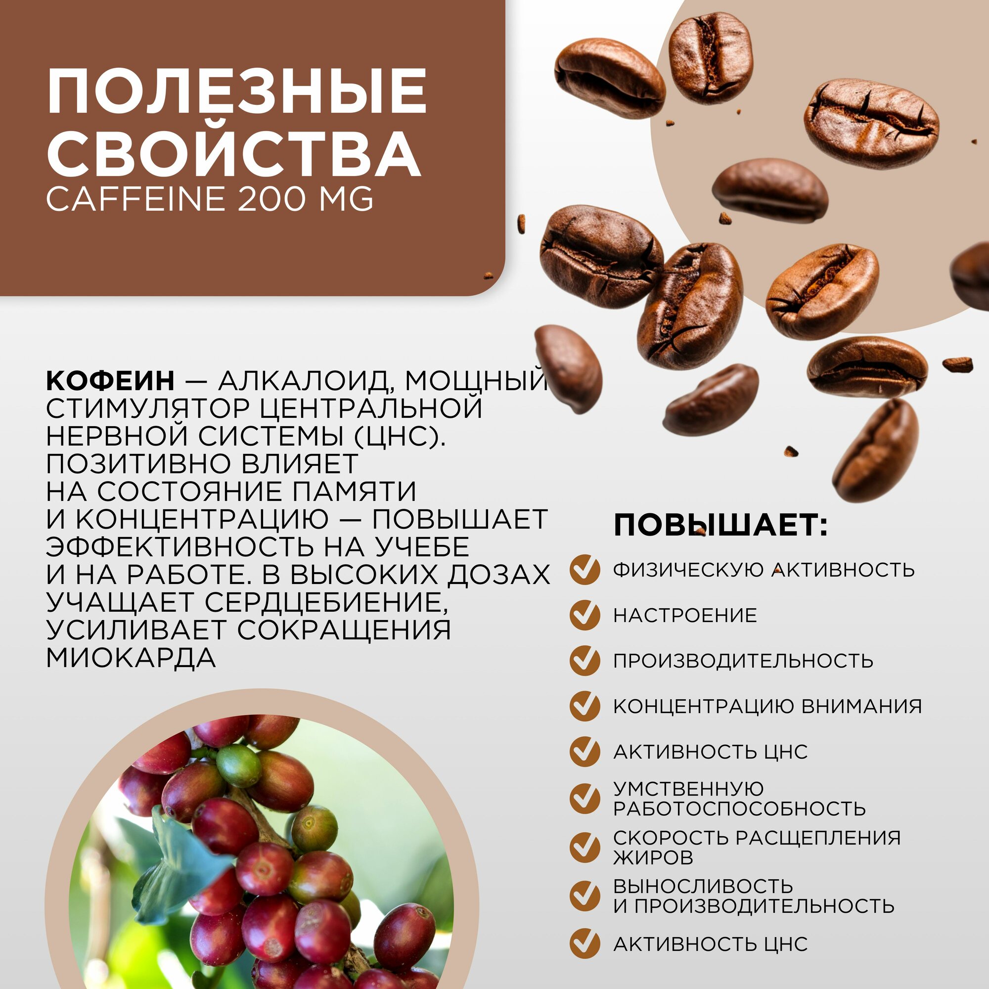 Кофеин, 200 мг. Энергетик, для тонуса, спортивное питание. Caffeine. 60 таблеток информация: