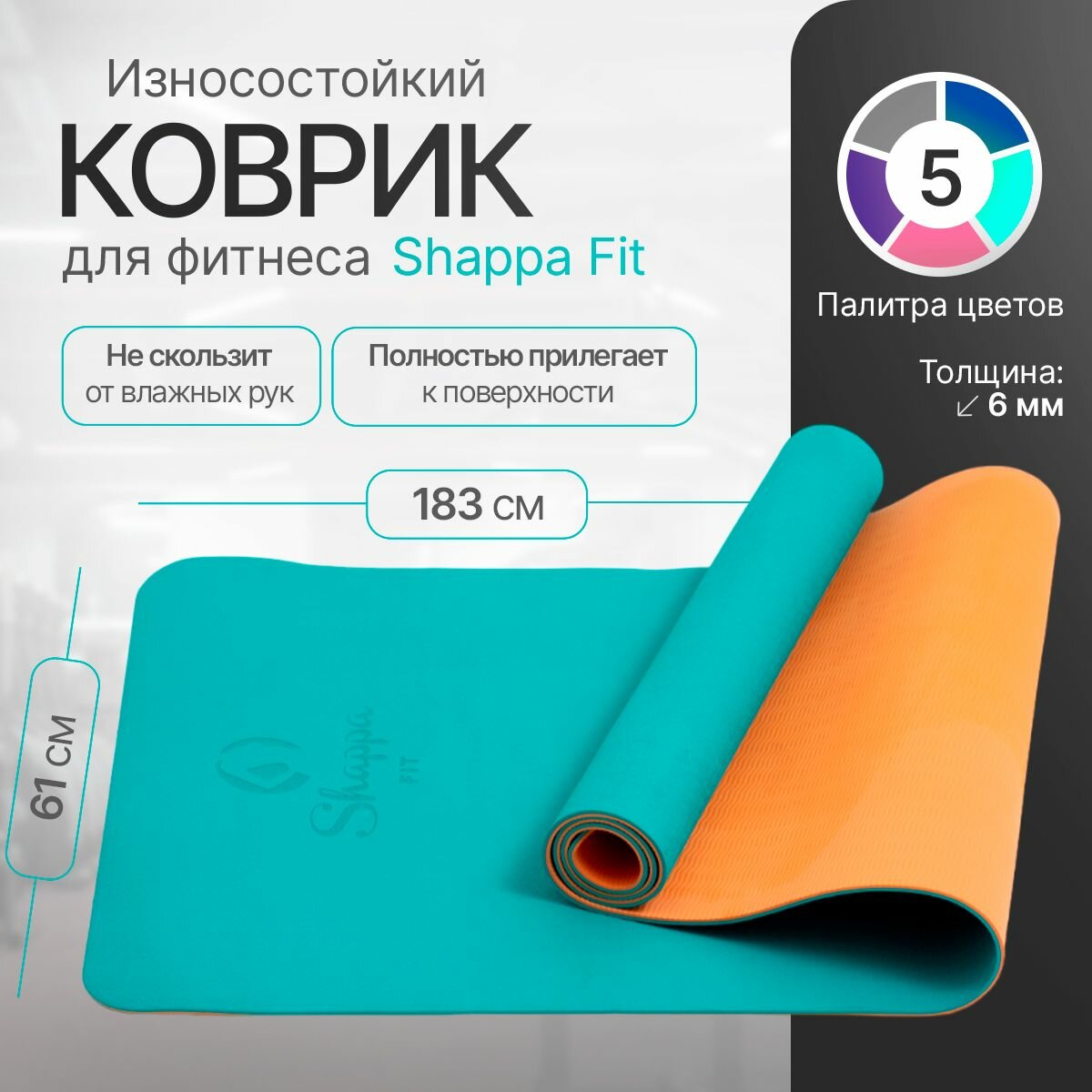 10 цен на Коврик для йоги Shappa Fit бирюзово-оранжевый, коврик для фитнеса