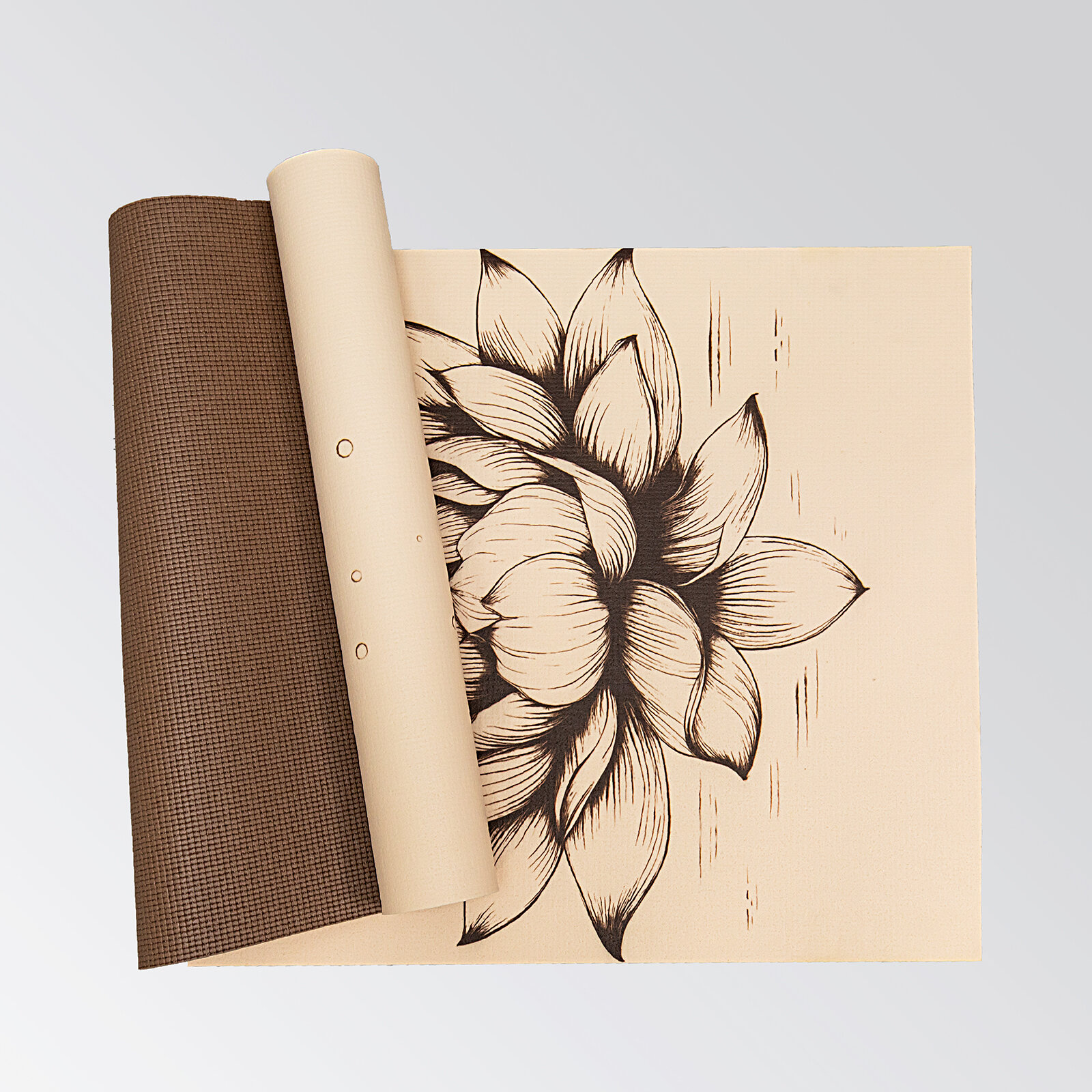 Коврик для спорта VILINA спортивный коврик для йоги и фитнеса, растяжки, гимнастики "Энергия" 61х183 см\коврик для занятий спортом двухслойный с принтом Лотос бежевый\капучино информация: