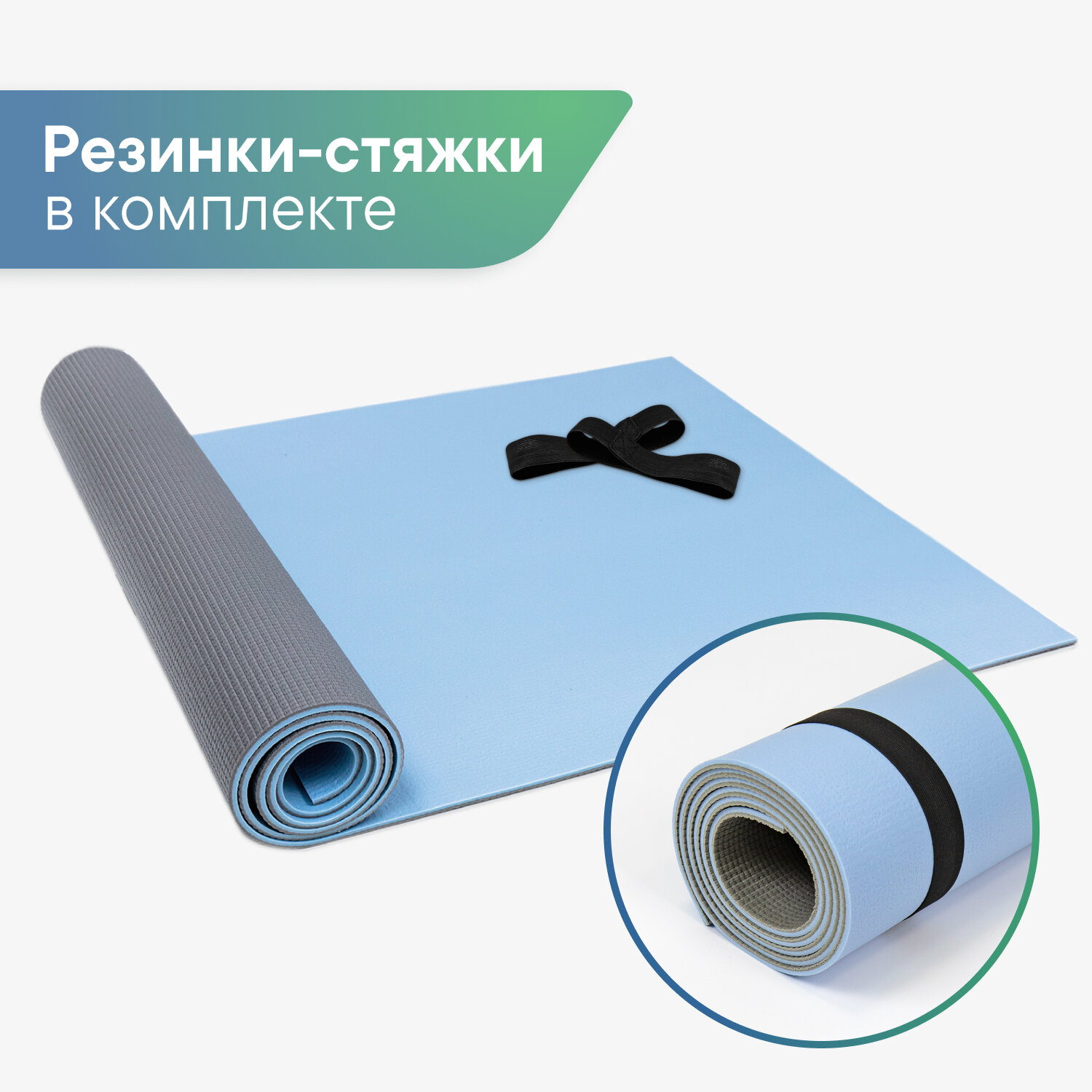 Коврик для спорта VILINA спортивный коврик для йоги и фитнеса, растяжки, гимнастики "Энергия" 61х183 см\коврик для занятий спортом двухслойный небесно-голубой\ cерый информация: