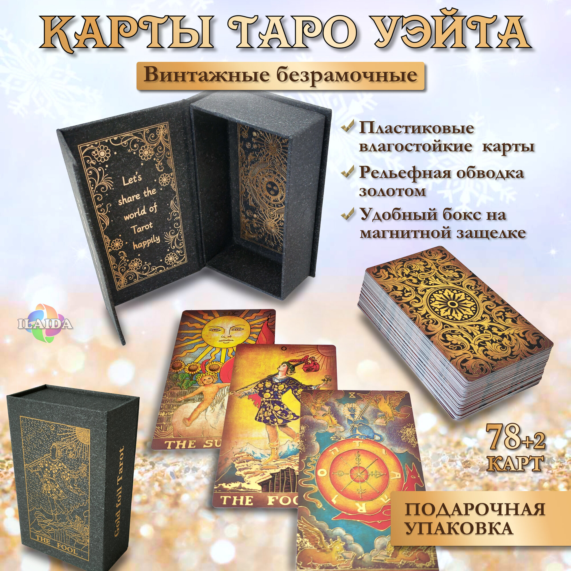 Отзывы на Карты Таро Уэйта Винтажные Пластиковые, 78 карт 12х7см в подарочной коробке, классические гадальные безрамочные