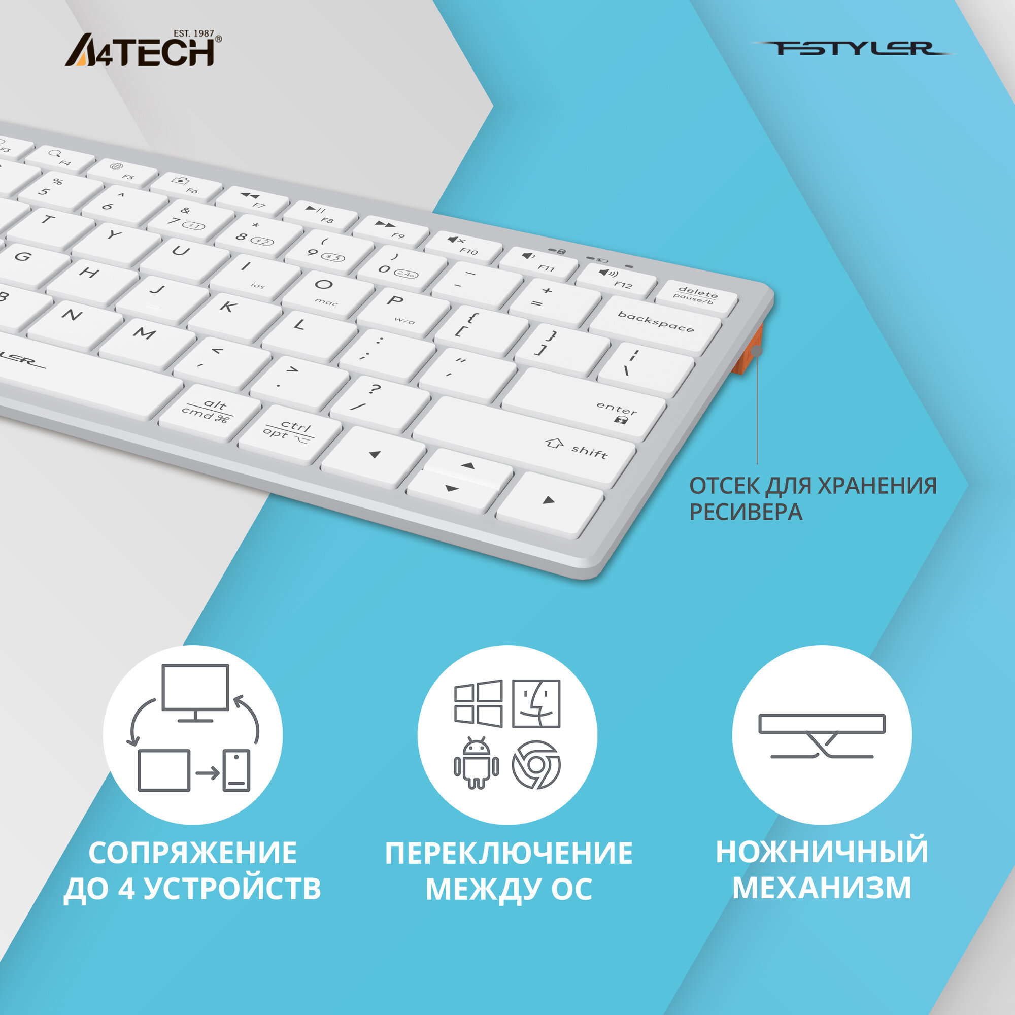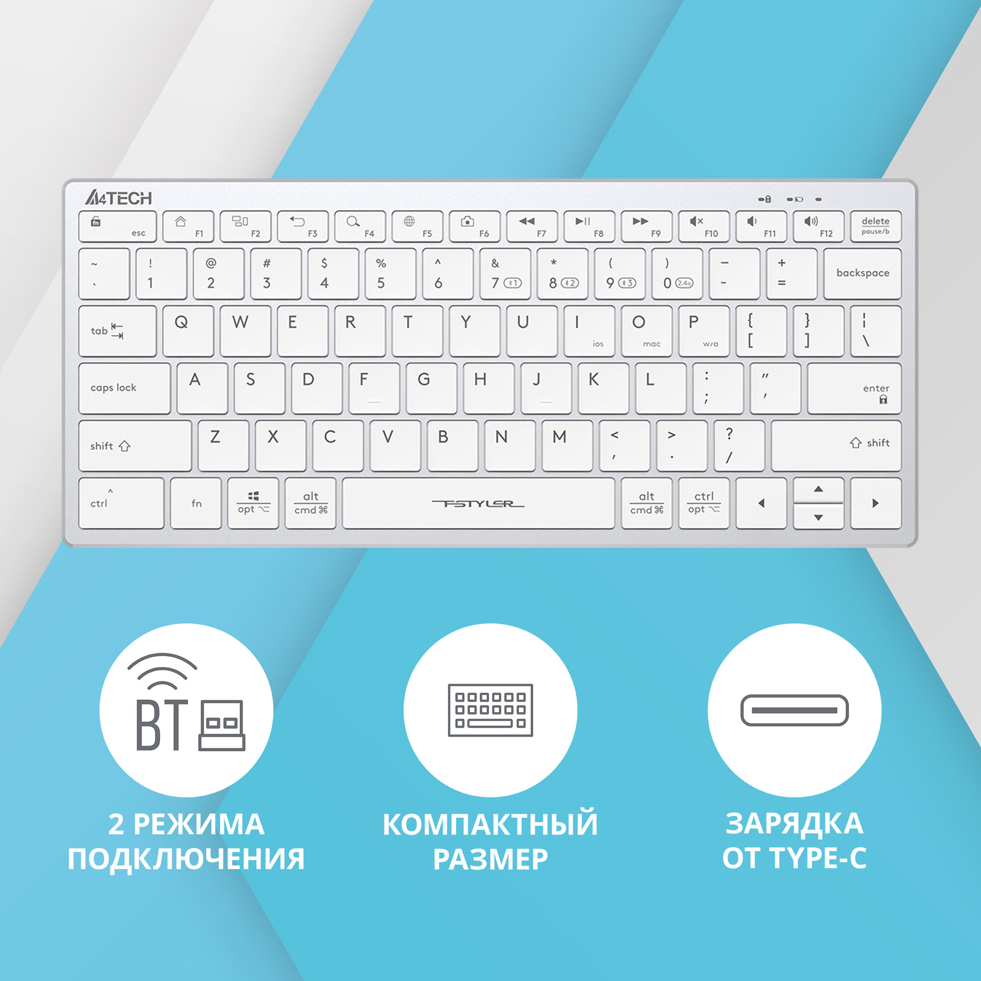 Отзывы на Клавиатура A4Tech Fstyler Fbx51c белый USB беспроводная BT/Radio slim Multimedia (fbx51c White) .