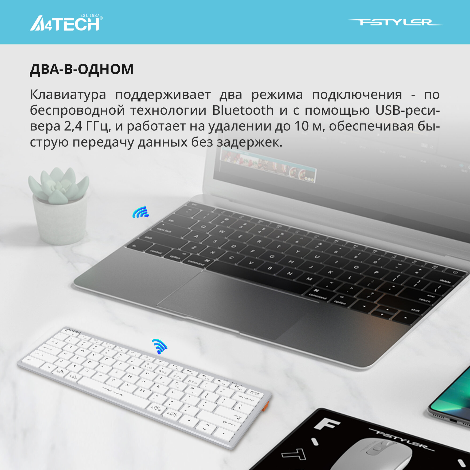 Клавиатура A4Tech Fstyler Fbx51c белый USB беспроводная BT/Radio slim Multimedia (fbx51c White) . информация: