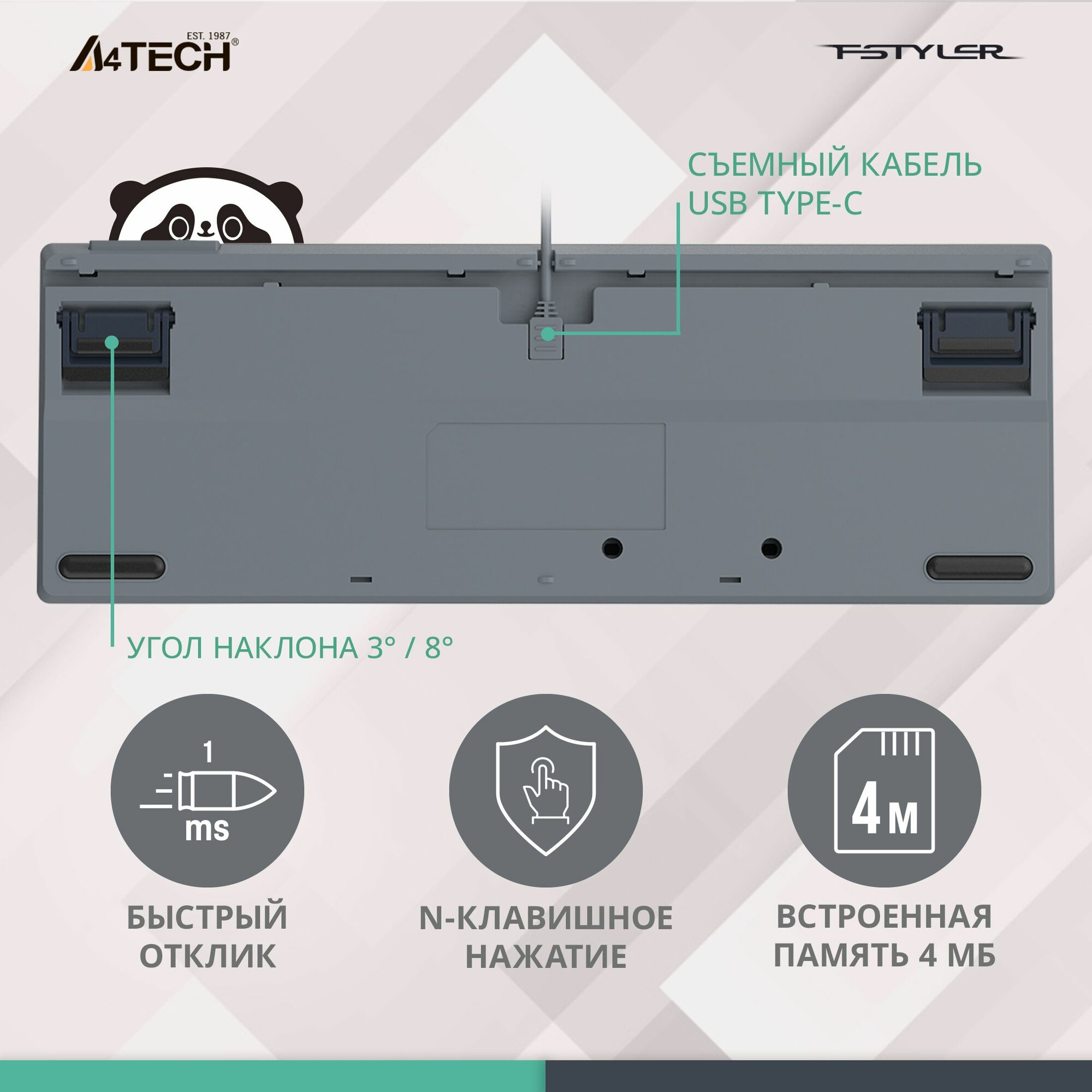 Клавиатура A4Tech Fstyler FS300, русские и английские буквы, черный (fs300 panda rock) информация: