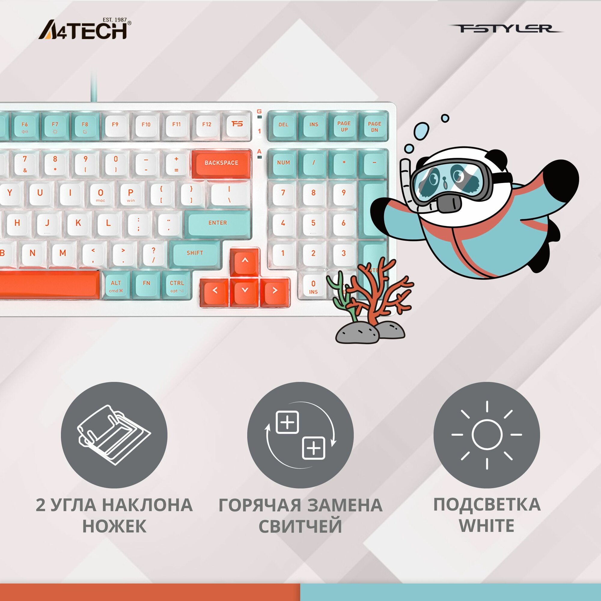 Клавиатура A4Tech Fstyler FS300, русские и английские буквы, белый (fs300 panda snorklening) информация: