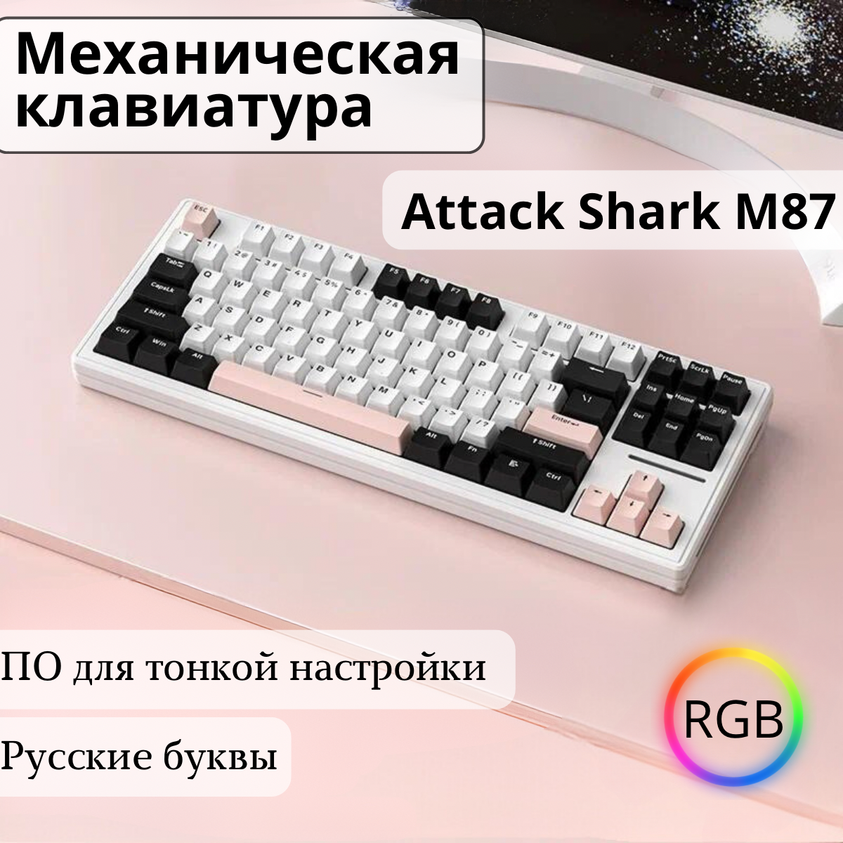 Клавиатура игровая Attack Shark M87 Soft White RGB (RUS), беспроводная, 87 кнопок, HotSwap информация: