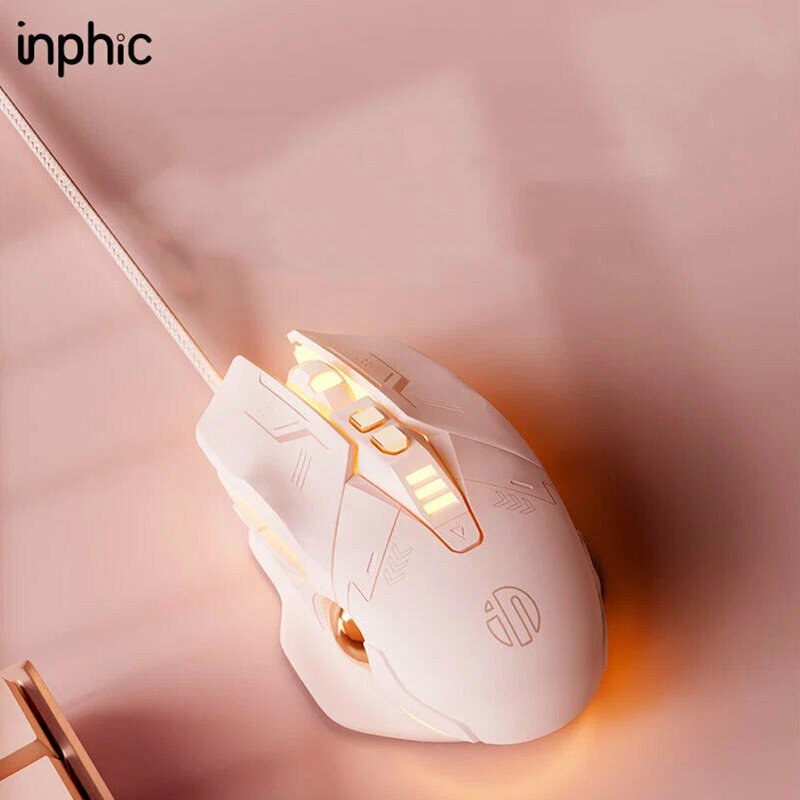 10 цен на Проводная игровая бесшумная мышь Inphic PW5 , бесшумными кнопками и RGB подсветкой, Игровая компьютерная мышь , бежевый