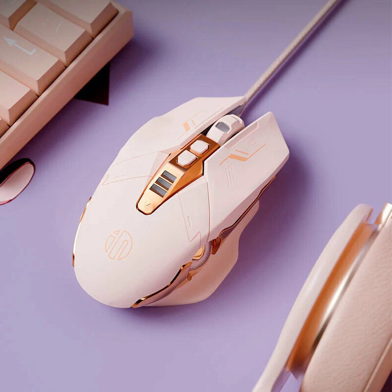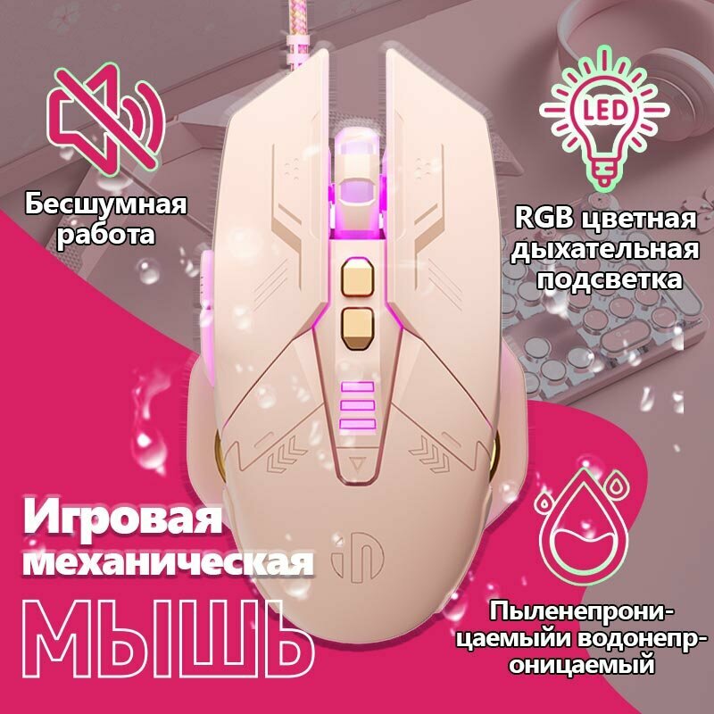Проводная игровая бесшумная мышь Inphic PW5 , бесшумными кнопками и RGB подсветкой, Игровая компьютерная мышь , бежевый информация: