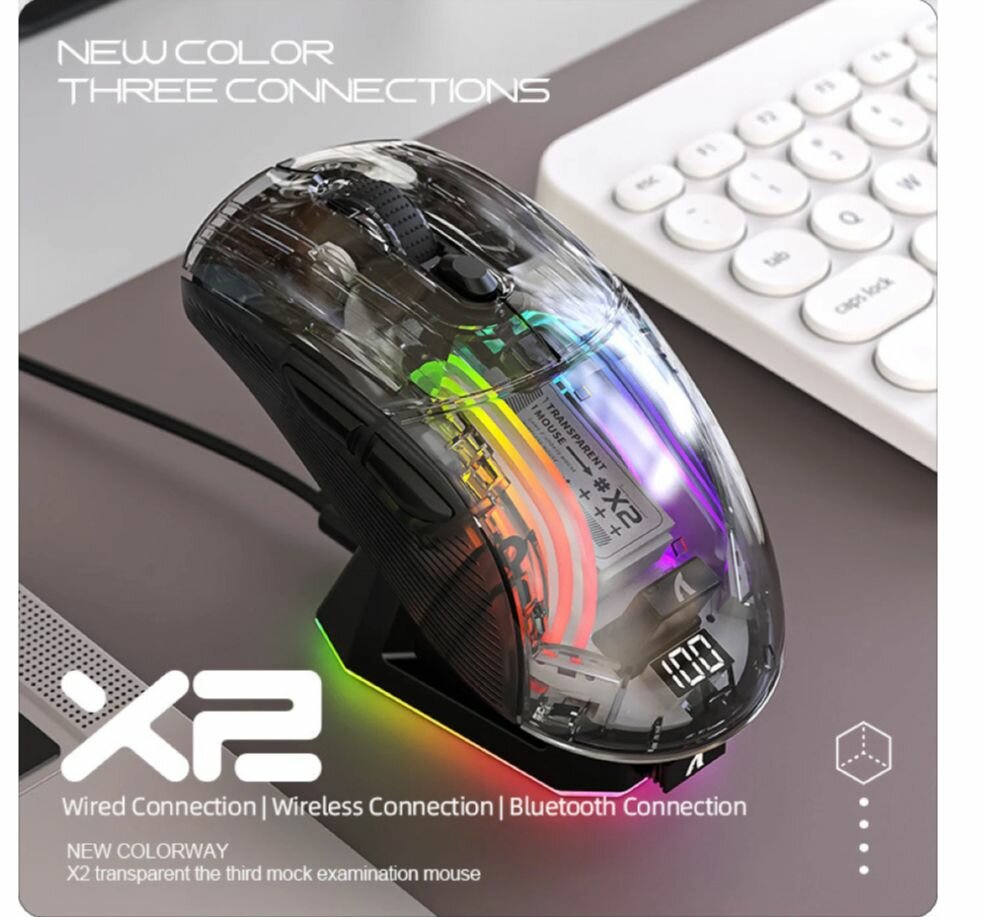 Отзывы на Беспроводная игровая мышь Attack Shark X2PRO с док-станцией, Bluetooth + 2.4Ghz USB, черный/прозрачный