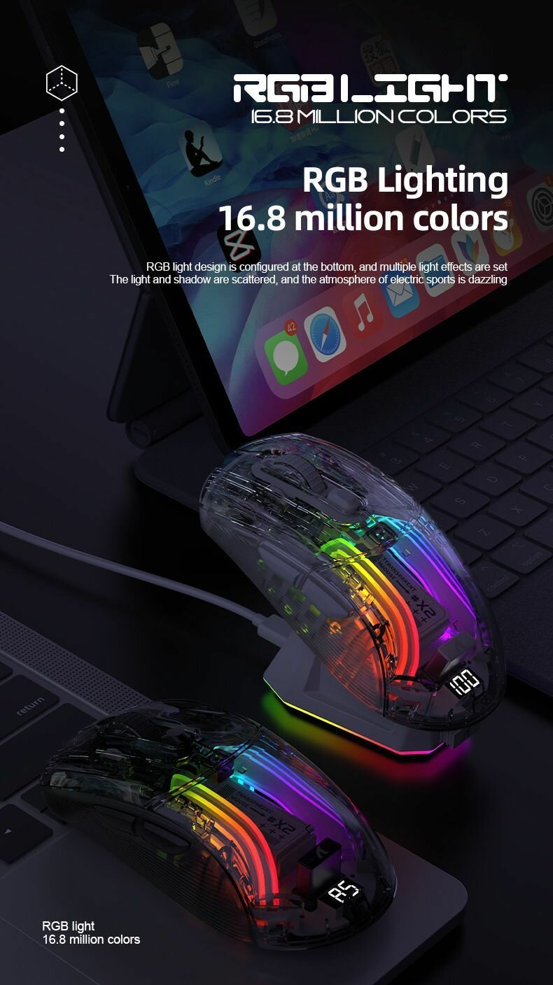 Беспроводная игровая мышь Attack Shark X2PRO с док-станцией, Bluetooth + 2.4Ghz USB, черный/прозрачный информация: