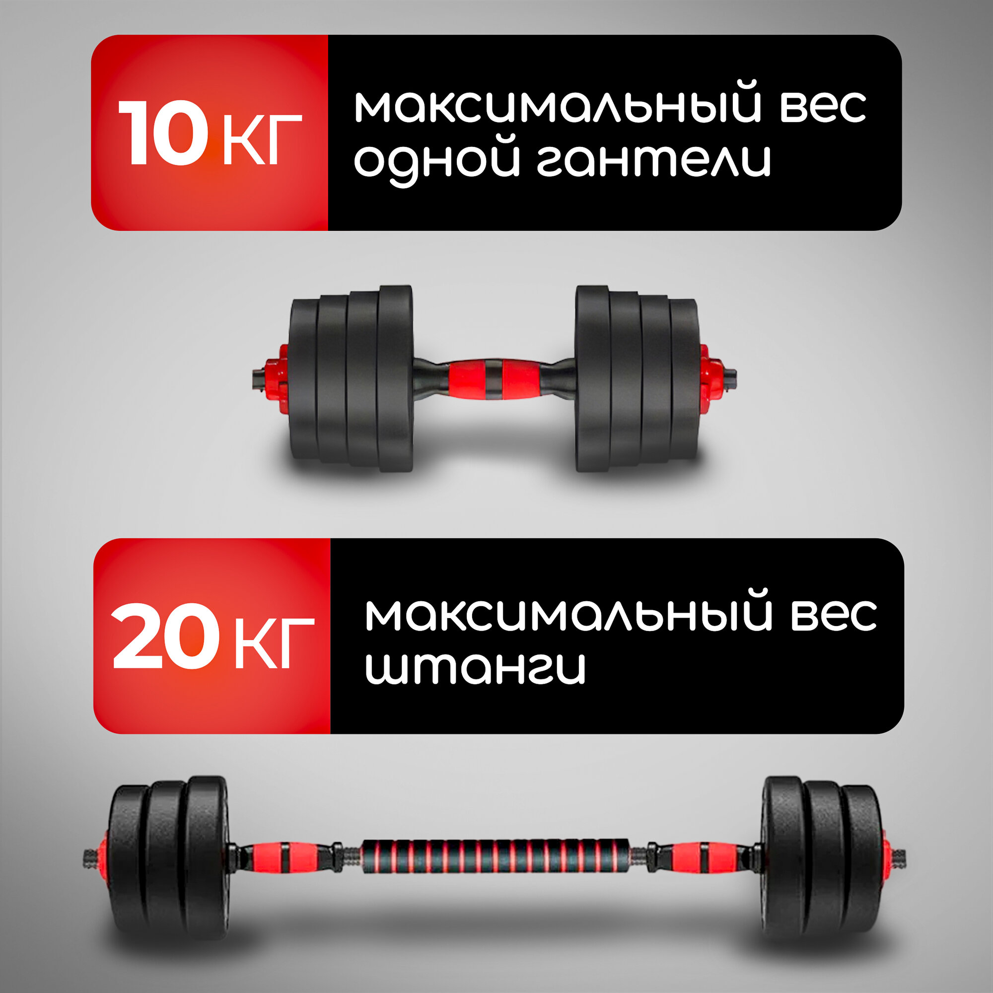 Гантели разборные 20 кг (2х10 кг) со штангой, трансформер информация: