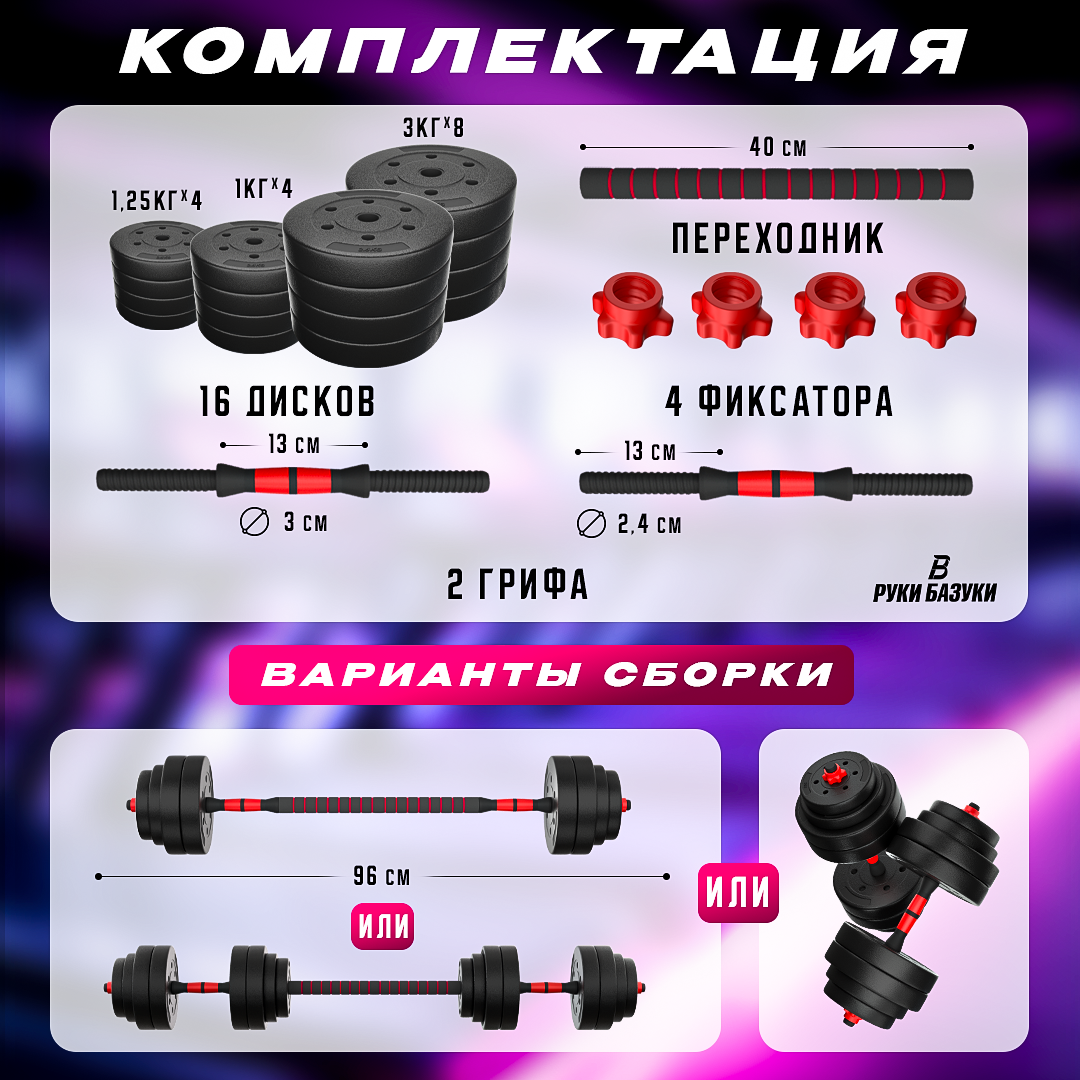 Гантели разборные 16,5+16,5 кг с грифом набор 33 кг информация: