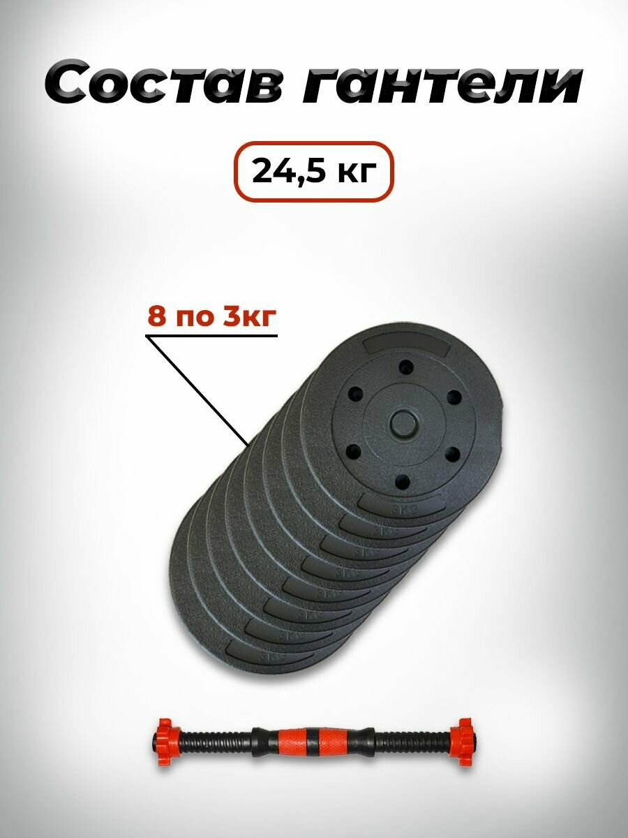10 цен на Гантель-трансформер пластиковая разборная 24,5кг, Без переходника