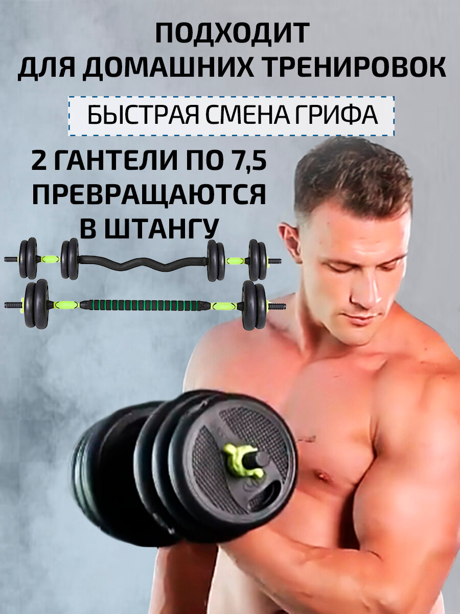 10 цен на Набор разборных пластиковых гантелей Summus для фитнеса с коннектором для штанги прямым и W-образным 2 шт. по 7,5 кг, арт. 600-034