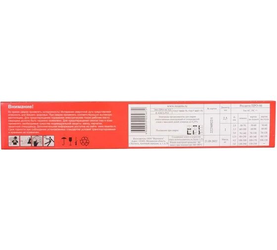 Сварочный электрод РЕСАНТА ПРО-46 Ф2,5 Пачка 1 кг информация: