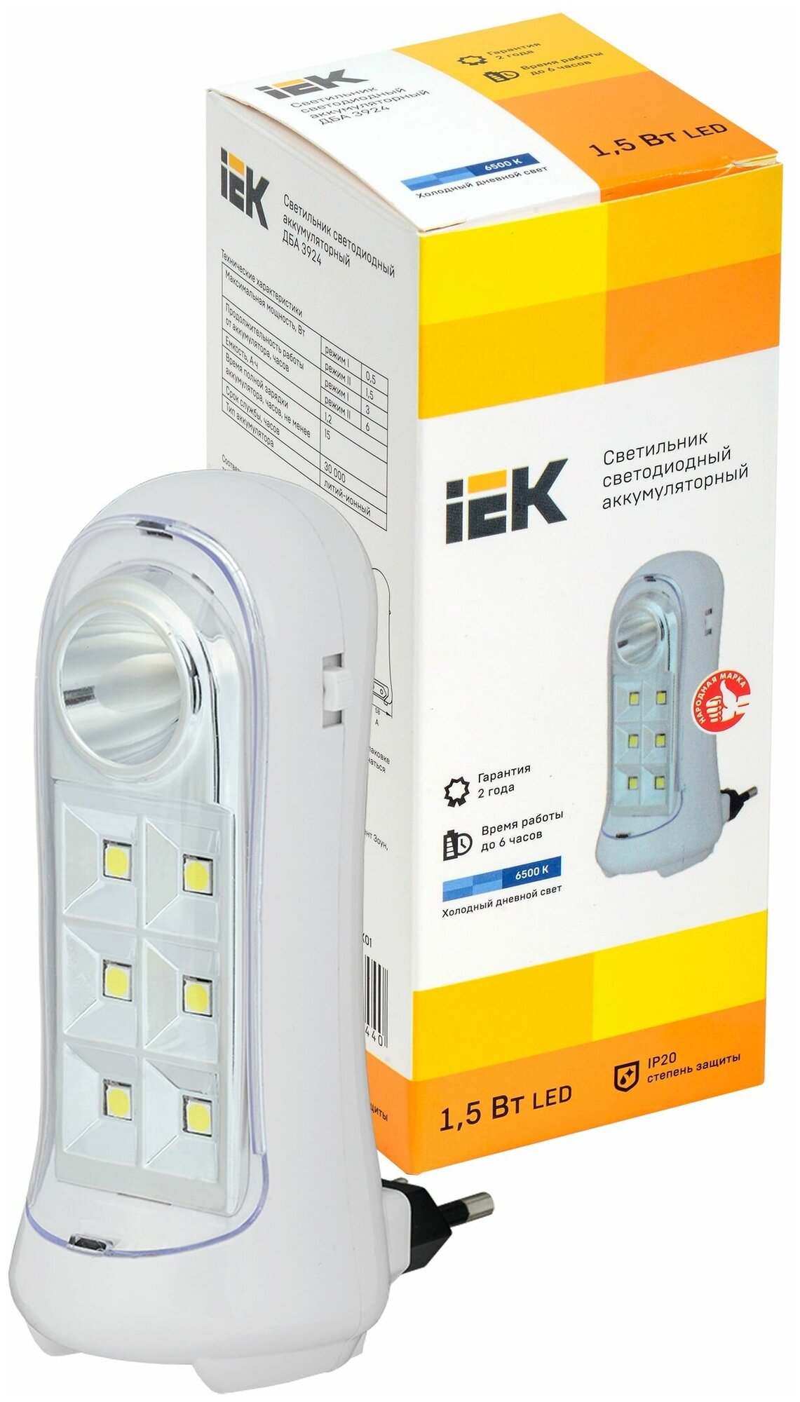 Светильник ДБА 3924 аккумулятор 3ч 1,5Вт, IEK LDBA0-3924-07-K01 (1 шт.) информация: