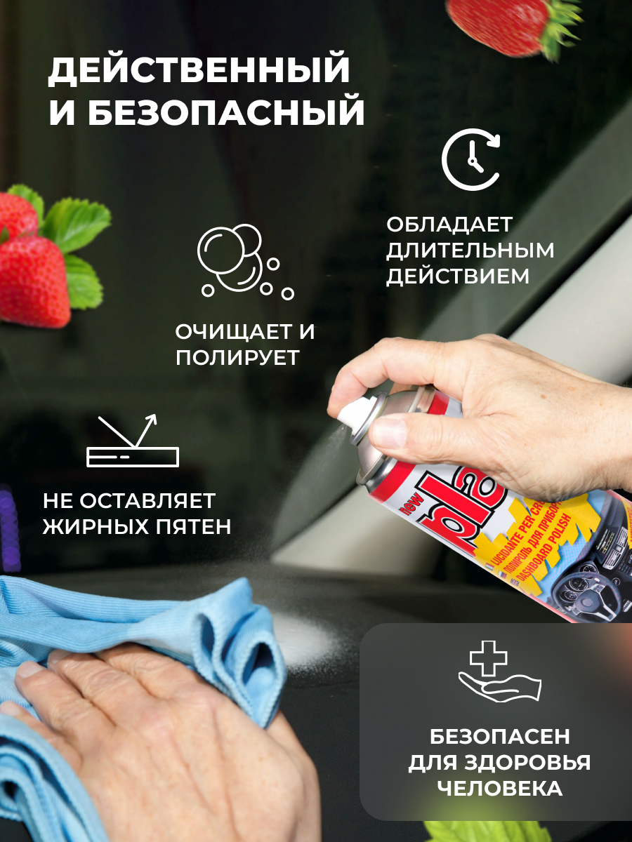 Отзывы на Полироль салона PLAK 750 мл (аэр.). Клубника. Применение: пластик Тип: полироль Объём: 0.75 EAN-13: 8002424001672 Тип: уход и очистка