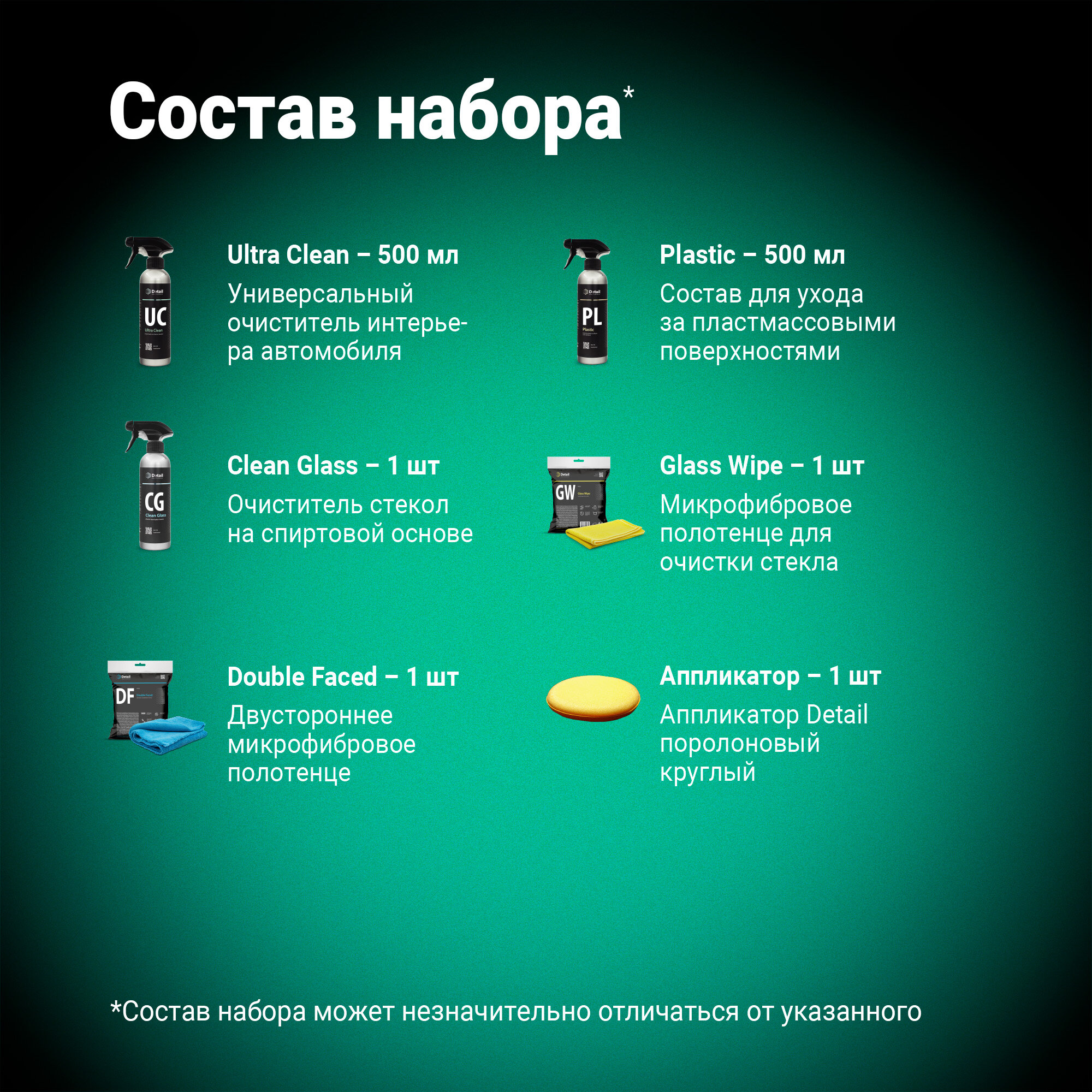 Набор автохимии Detail для ухода и химчистки салона, 6 предметов. информация: