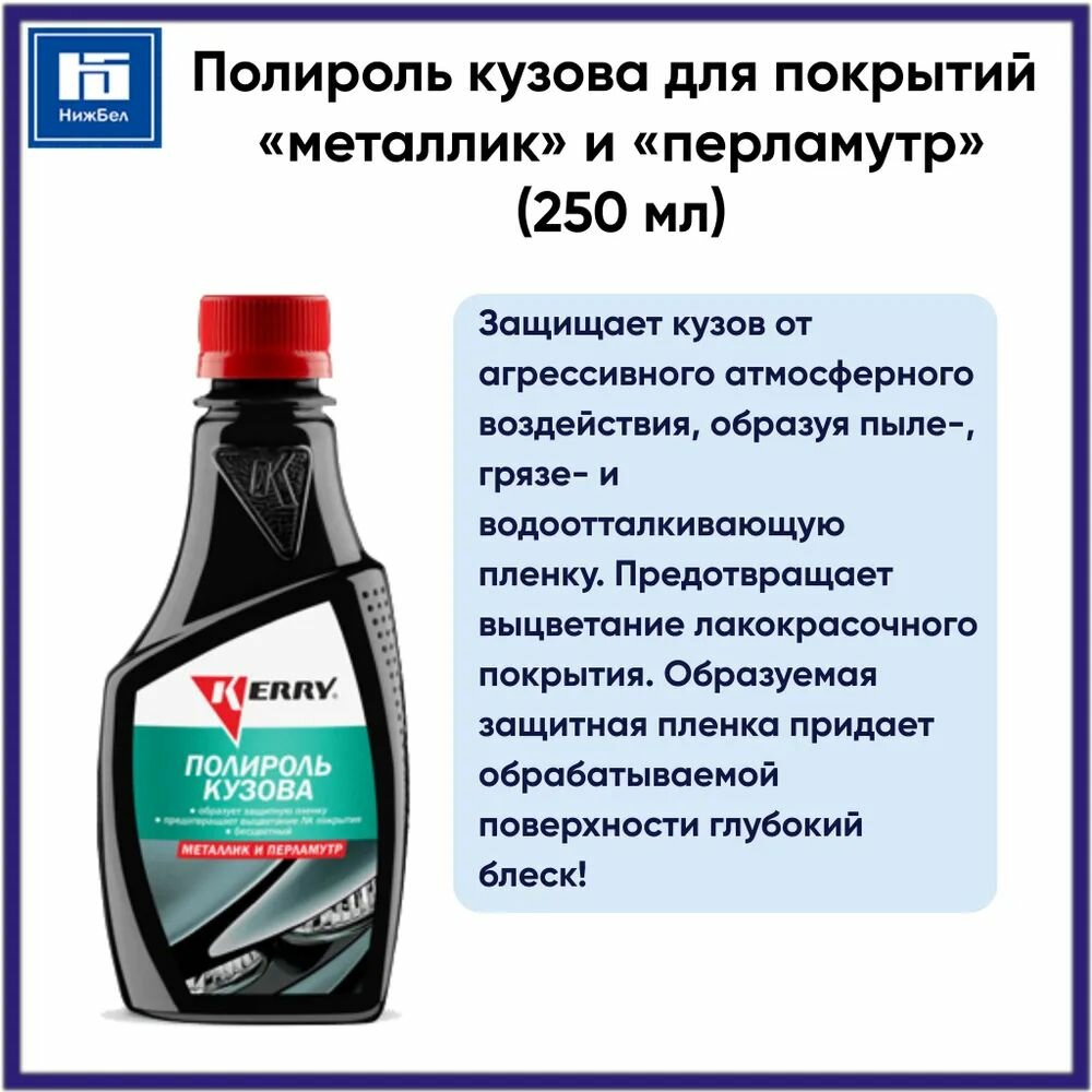 Полироль кузова для покрытий типа "металлик" и "перламутр" (250 мл) KERRY KR252 информация: