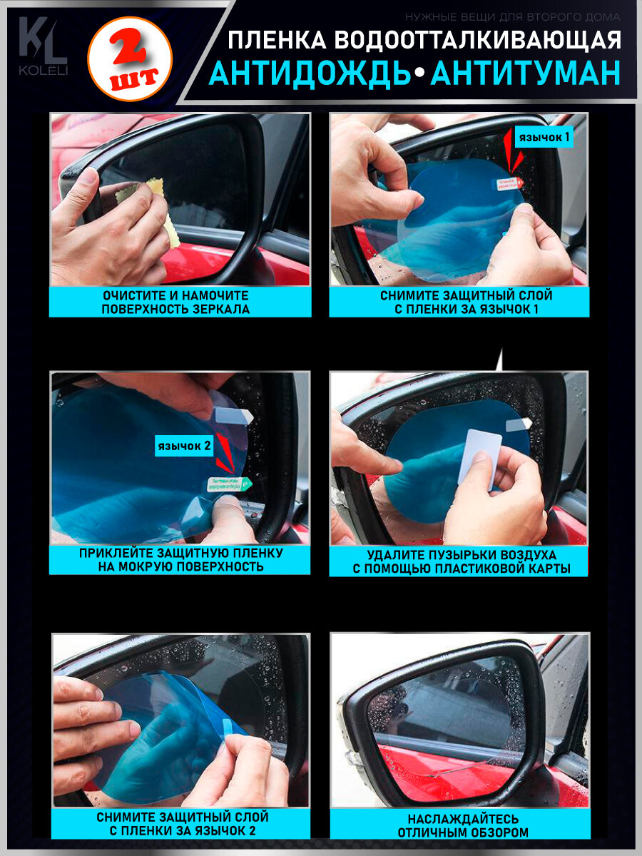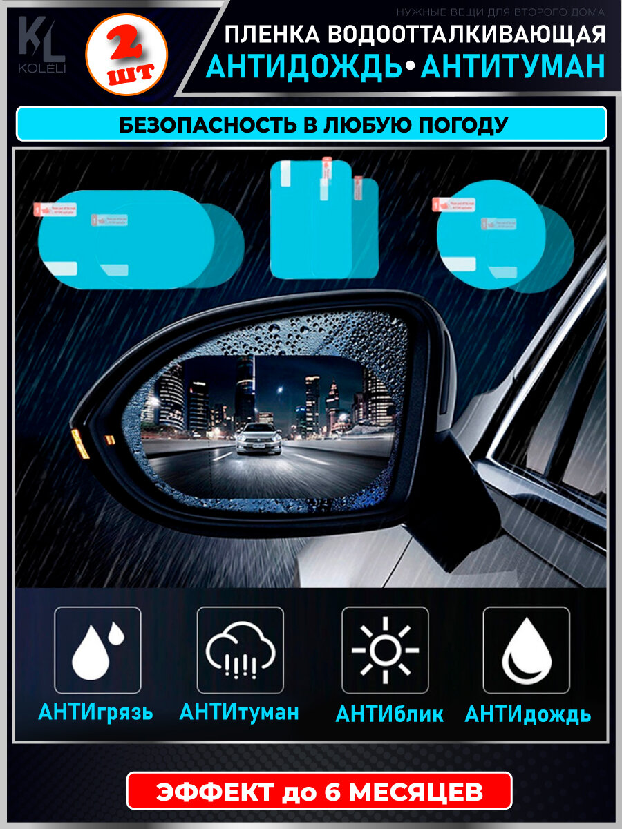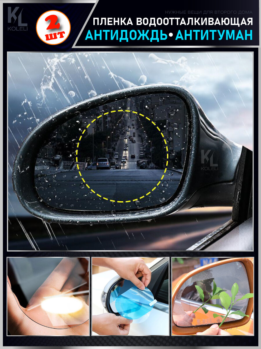 KoLeli / Антидождь пленка, водоотталкивающие наклейки на зеркала, антитуман, 2 шт. информация: