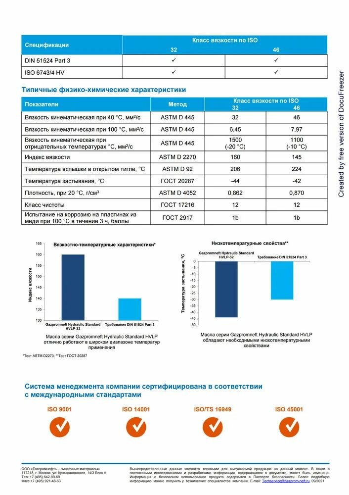 Масло гидравлическое Gazpromneft Hydraulic HVLP-46 минеральное, 20 л информация: