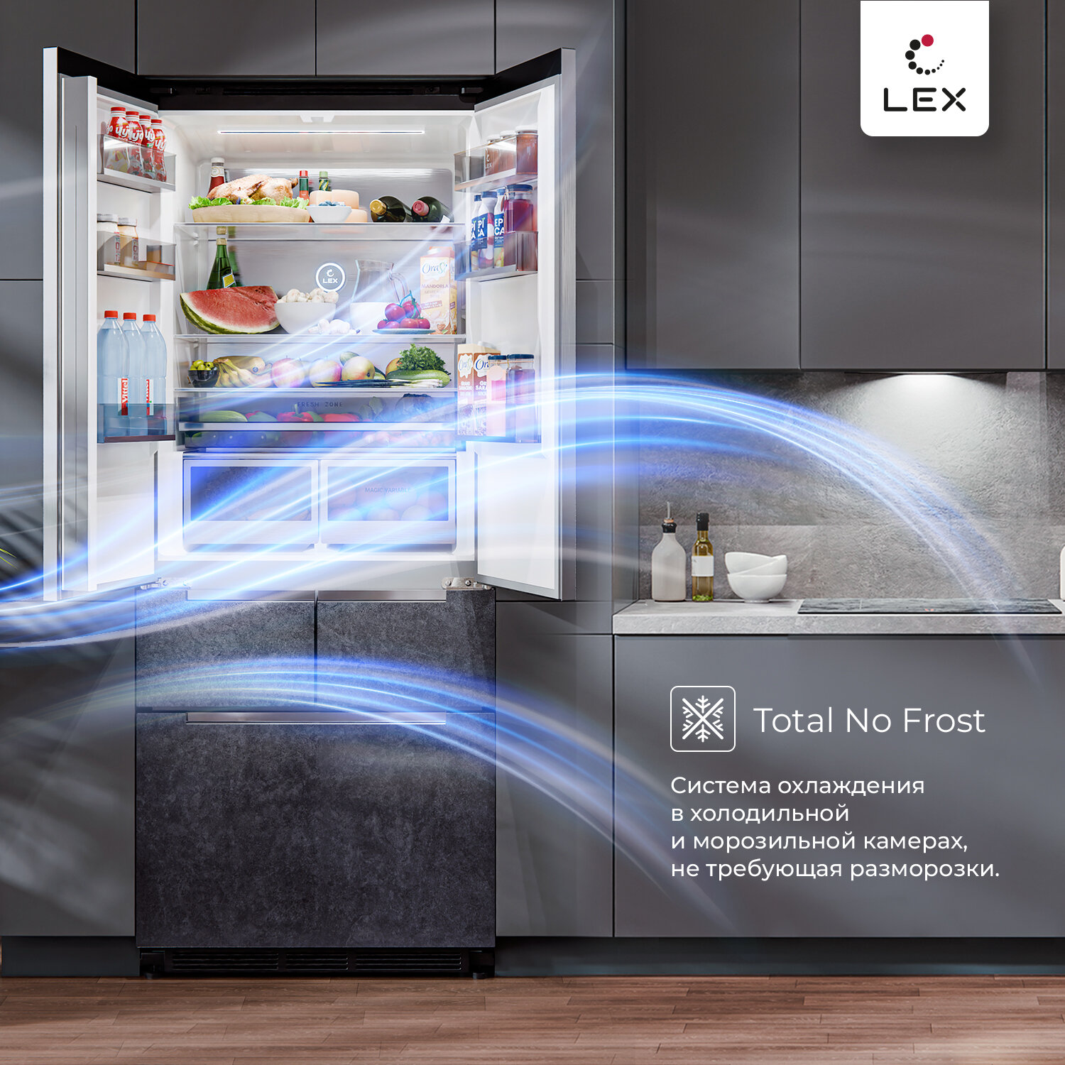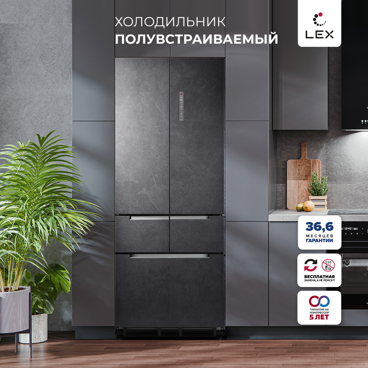 10 цен на Холодильник четырехкамерный полувстраиваемый LEX LFD424STGIDBI,NoFrost,Суперохлаждение, суперзаморозка