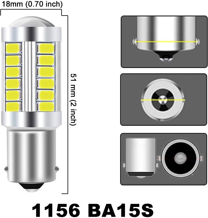 Отзывы на Светодиодные лампы (2 шт) LED P21W / BA15S (1156) 33SMD, 5000K белый свет, указателя поворота, стоп сигнала, заднего хода