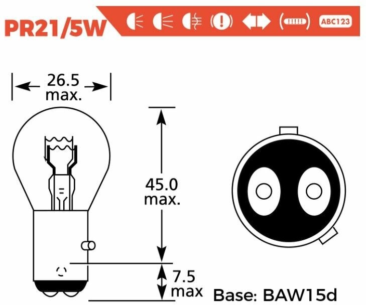 Лампы пара PR21/5W стоп+габариты ! СМ. рисунок патрона В описании! задние для белого стекла фонаря подходит FOCUS C-MAX Freelander BAW15D 902500 408 ₽