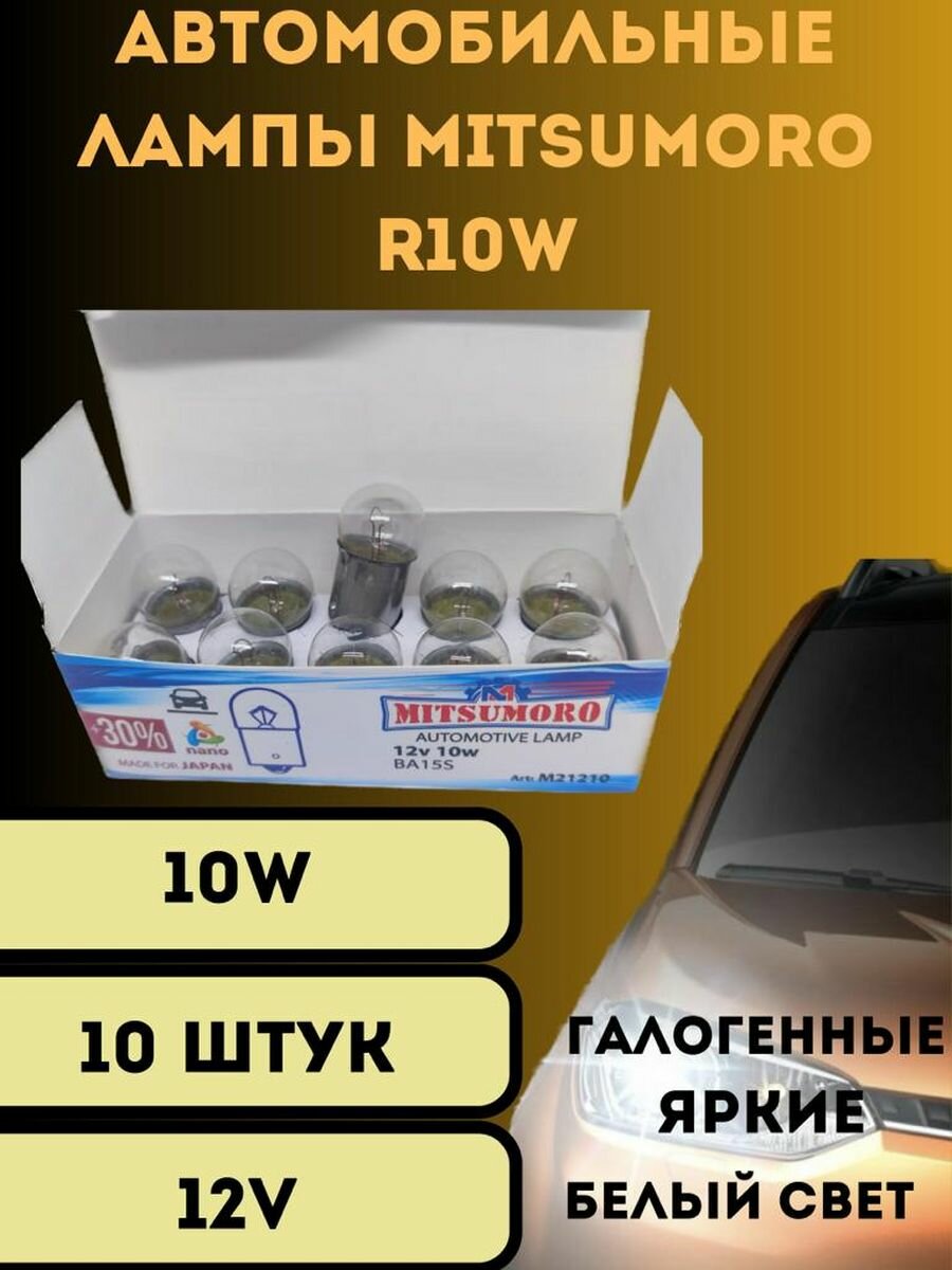 10 цен на Лампы-галогенные-автомобильные-R10W-Ba15s-12V-10шт