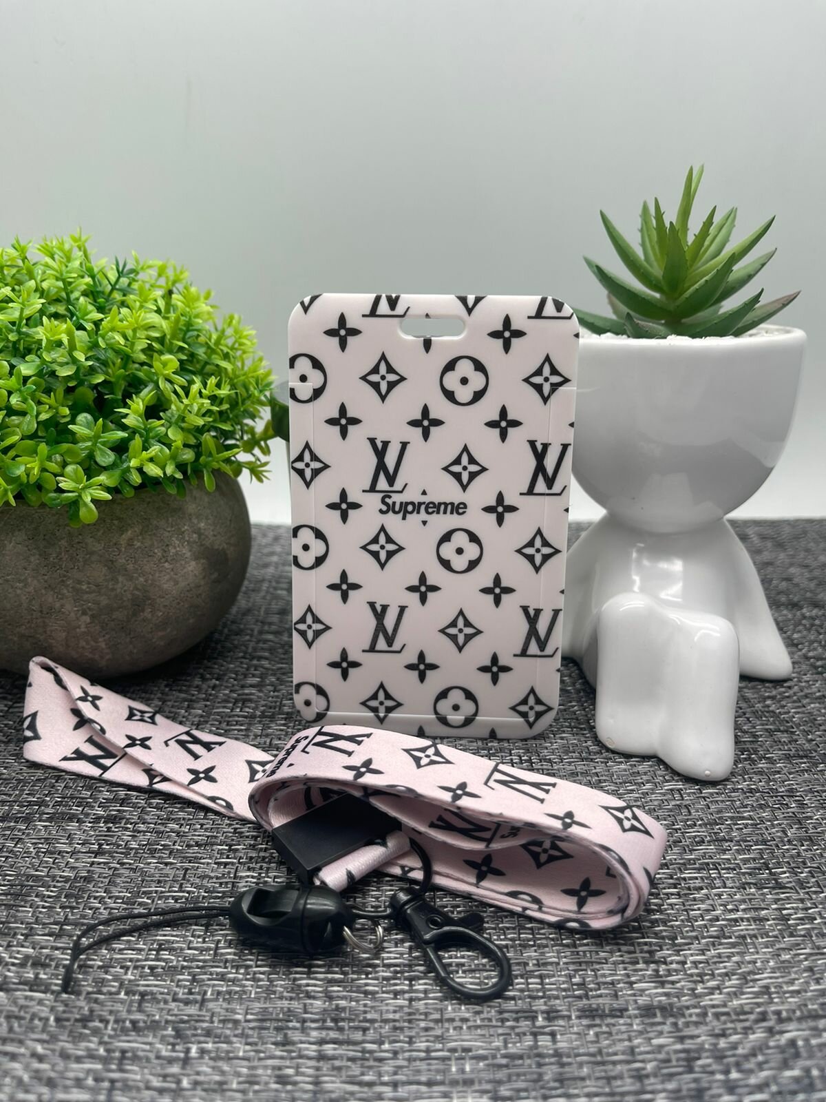 Бейдж для пропуска/школьника/студента с принтом под Луи (бежевый) 432 ₽
