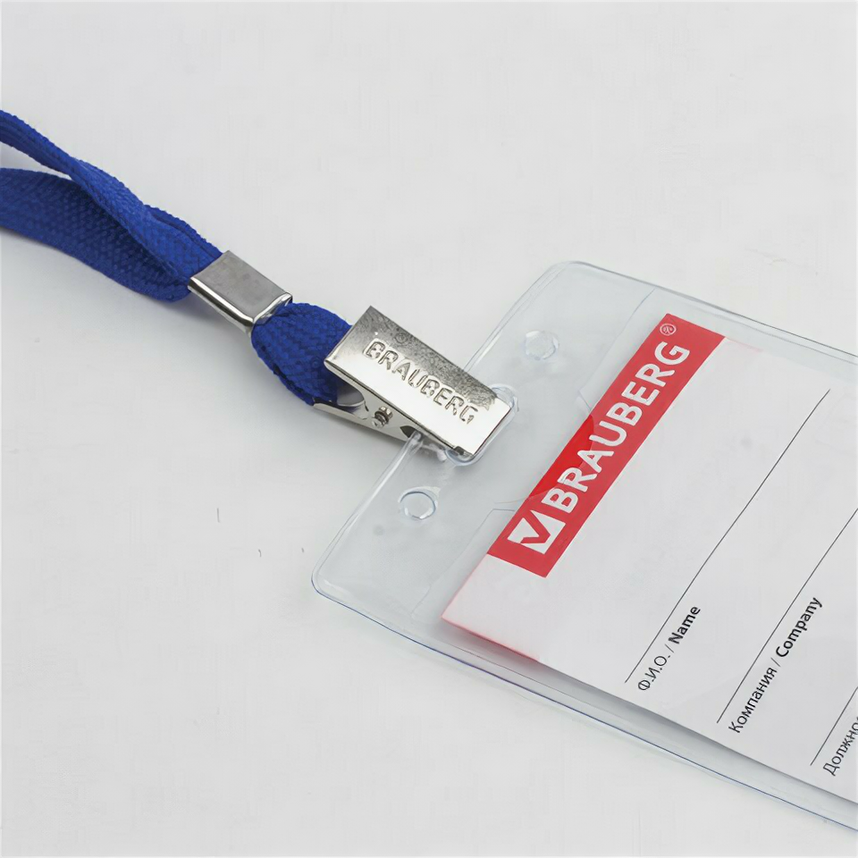 Бейдж вертикальный (90х60 мм), на синей ленте 45 см, BRAUBERG, 235698, 7 штук информация: