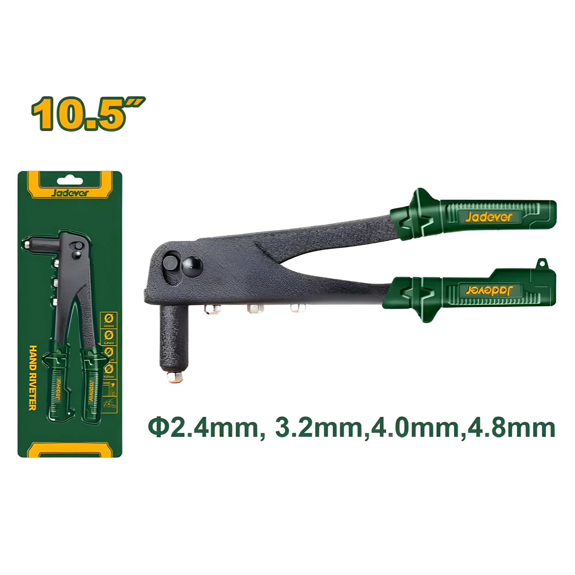 Заклепочник ручной JADEVER для заклепок 2,4мм, 3,2мм, 4мм, 4,8мм длина 260 мм информация: