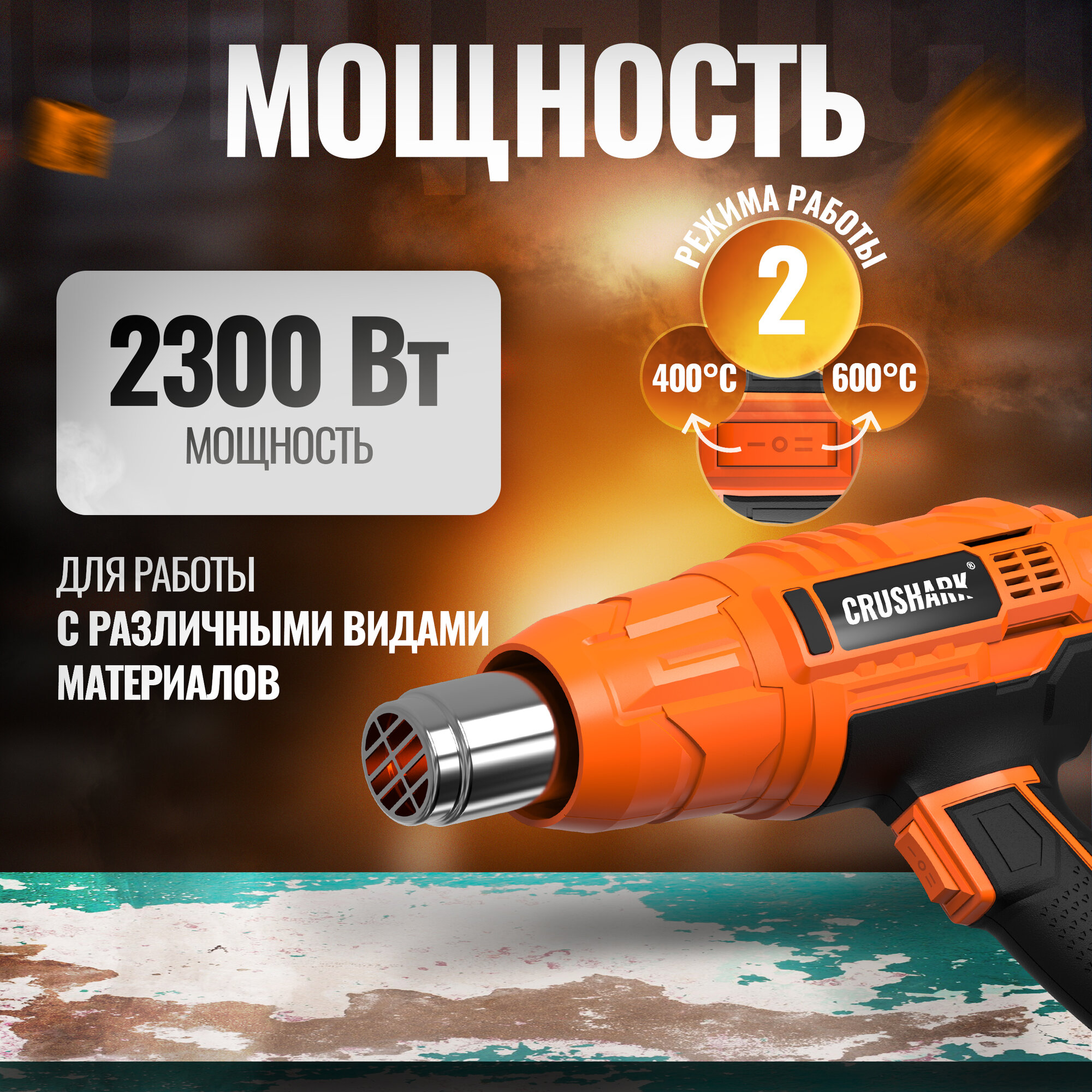 Отзывы на Фен строительный с регулировкой температуры 2300 Вт (400, 600 С), 2 скорости, обрезиненная рукоять CRUSHARK