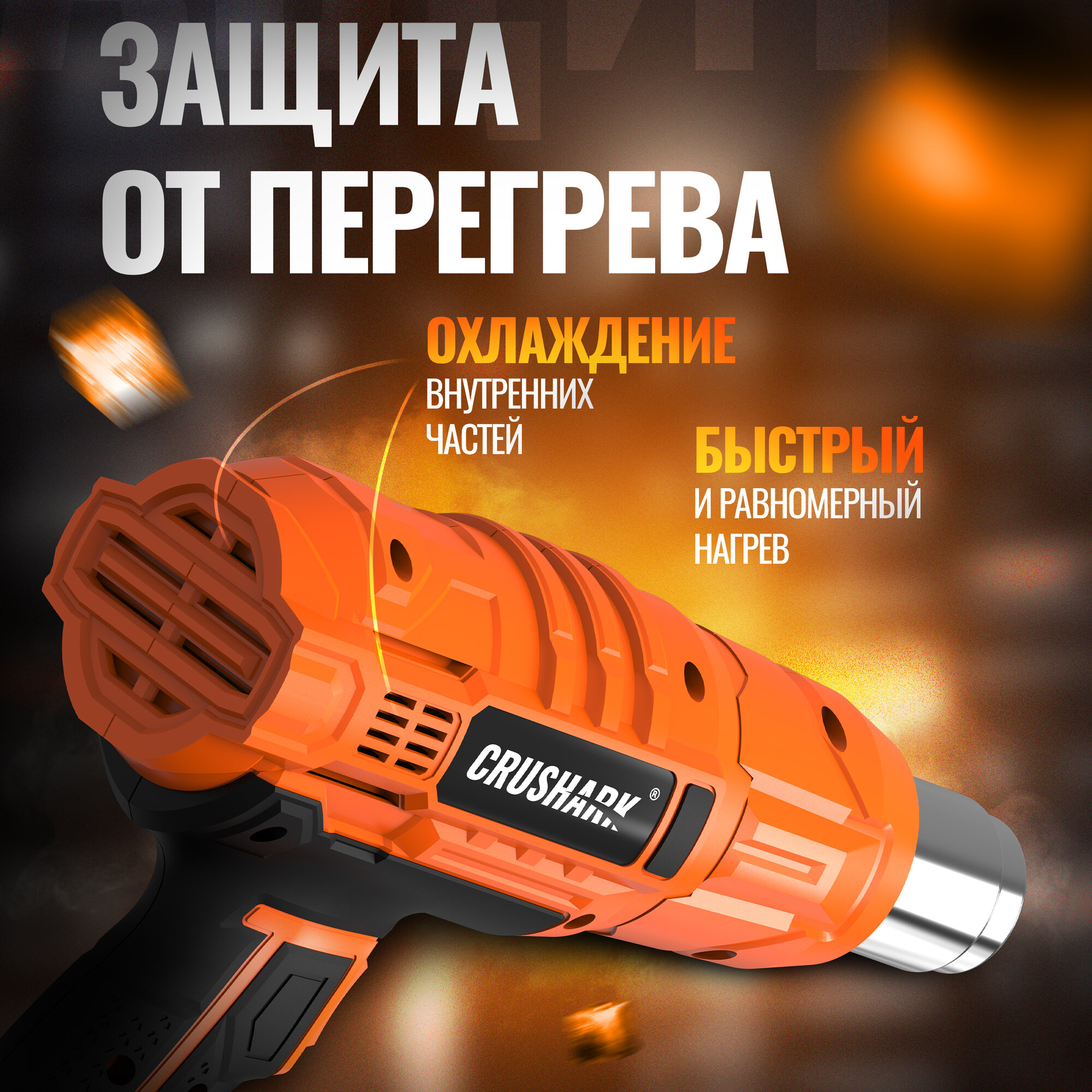 10 цен на Фен строительный с регулировкой температуры 2300 Вт (400, 600 С), 2 скорости, обрезиненная рукоять CRUSHARK