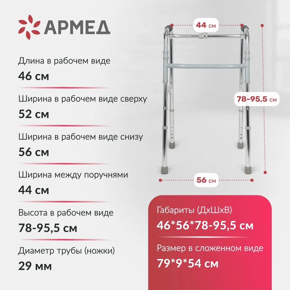 Ходунки для пожилых людей и инвалидов Армед KR913L (складные, шагающие, медицинские, для взрослых) информация: