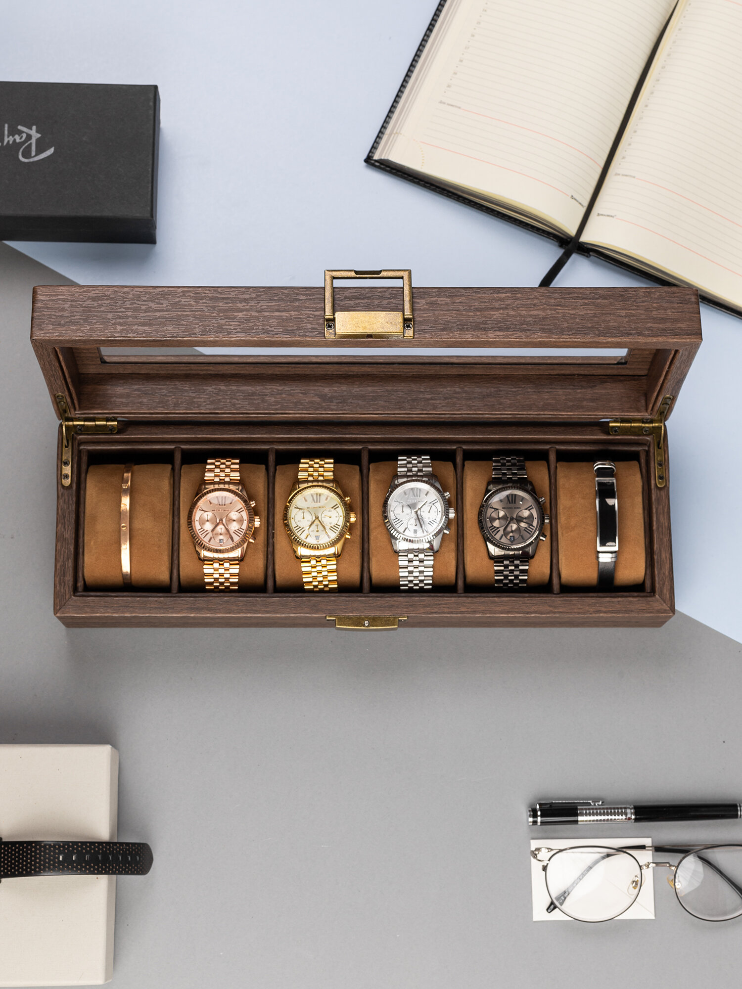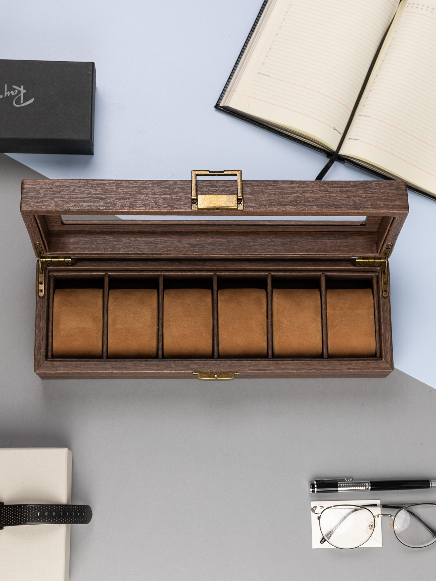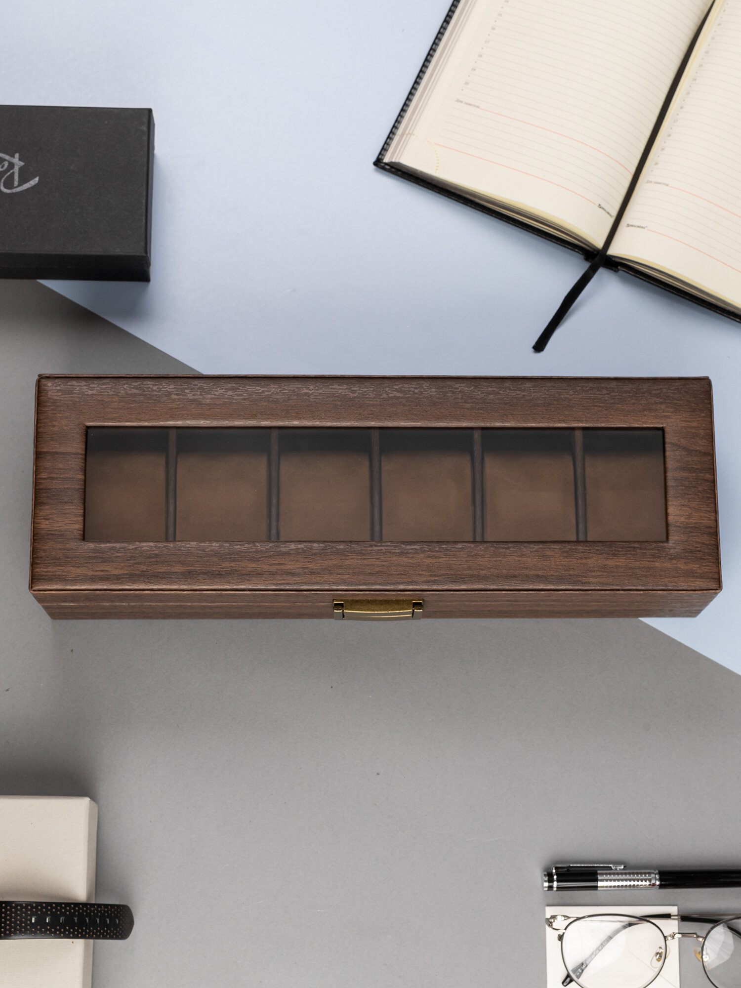 Отзывы на Качественная шкатулка для часов или браслетов 6 секций CloxBox W91M Коричневая экокожа