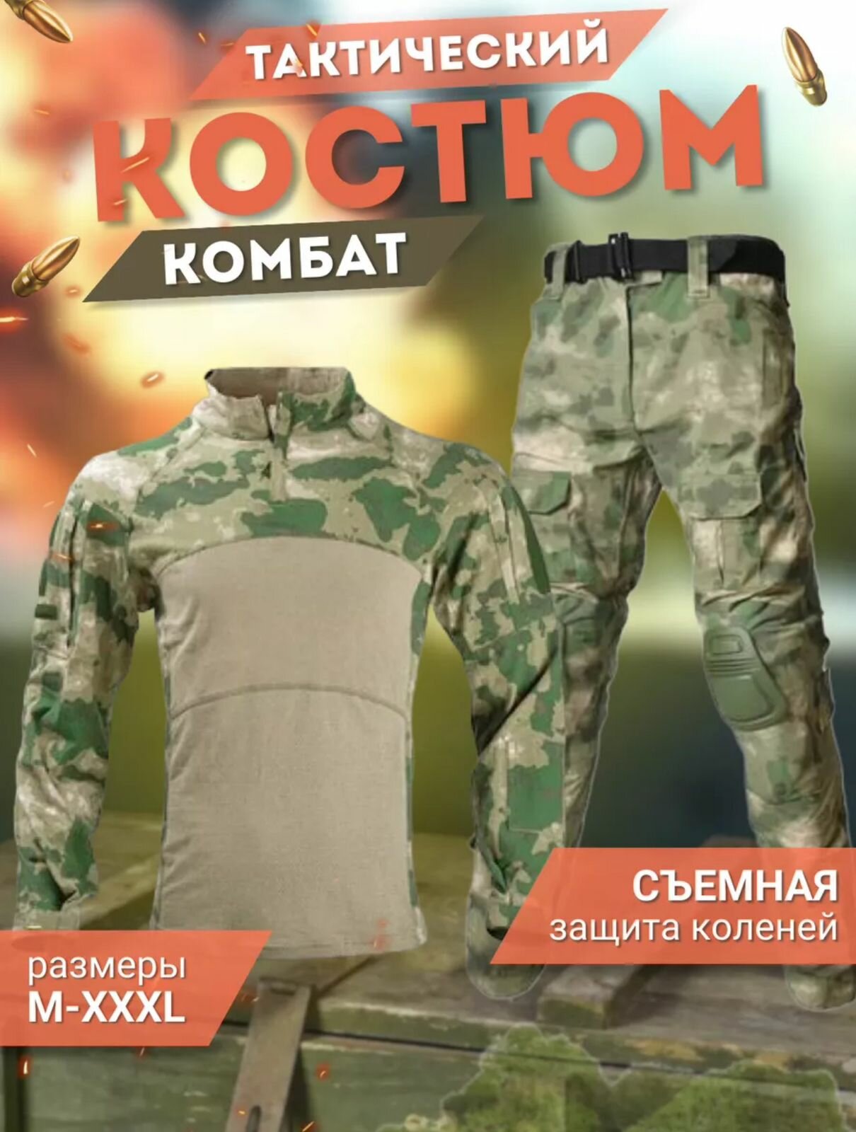 10 цен на Тактический мужской костюм COMBAT с защитными наколенниками мох XL