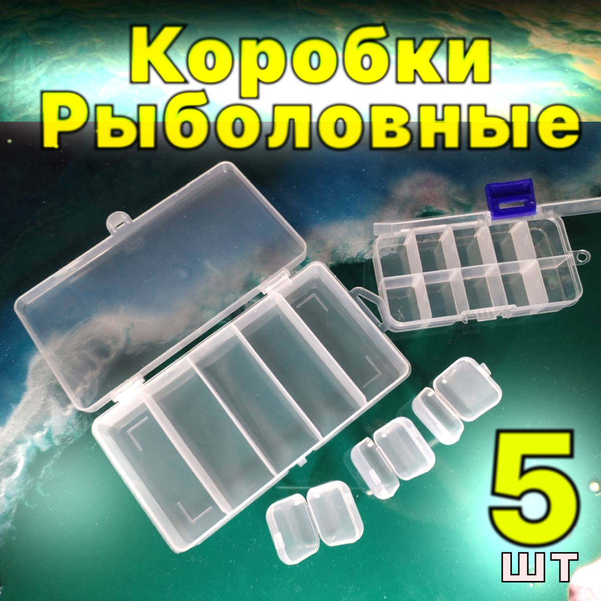 10 цен на Коробки рыболовные светлые/органайзеры для приманок, воблеров/контейнеры для блесен и крючков - набор 5 шт.