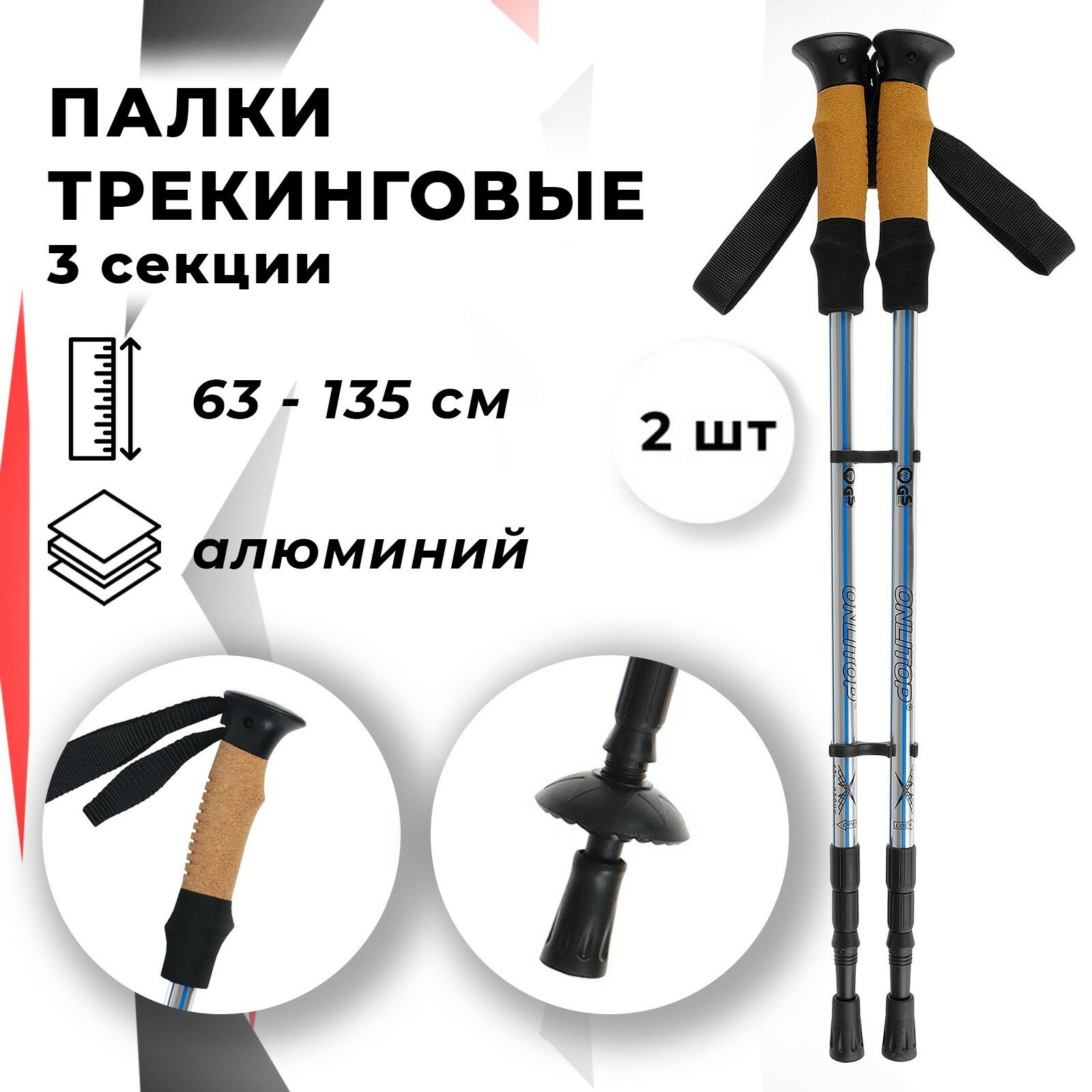 10 цен на Палки для скандинавской ходьбы ONLITOP, телескопические, 3 секции, до 135 см, 2 шт., цвет микс 1шт.