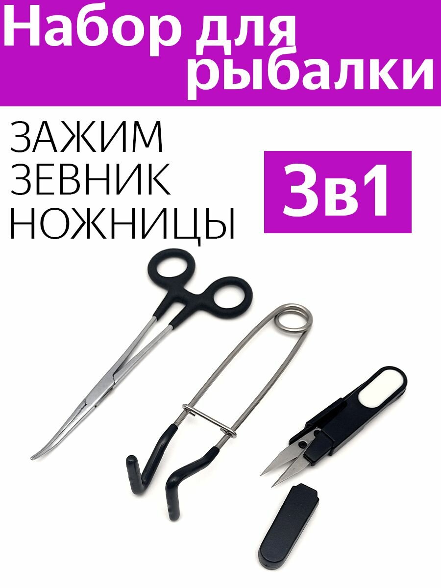 10 цен на Комплект рыболовный (Зажим экстрактор прорезиненный, зевник L-образный, ножницы)