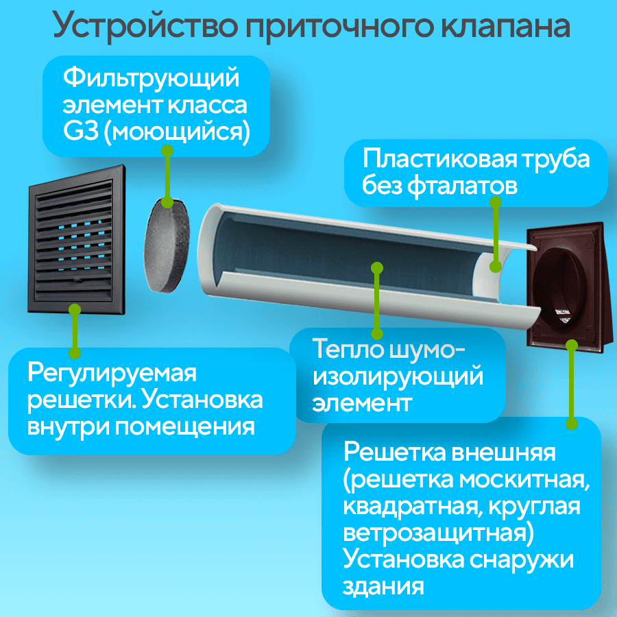 Отзывы на Приточный клапан вентиляционный, КП-1005-04-GB, диаметр 100мм, длина 0,5м
