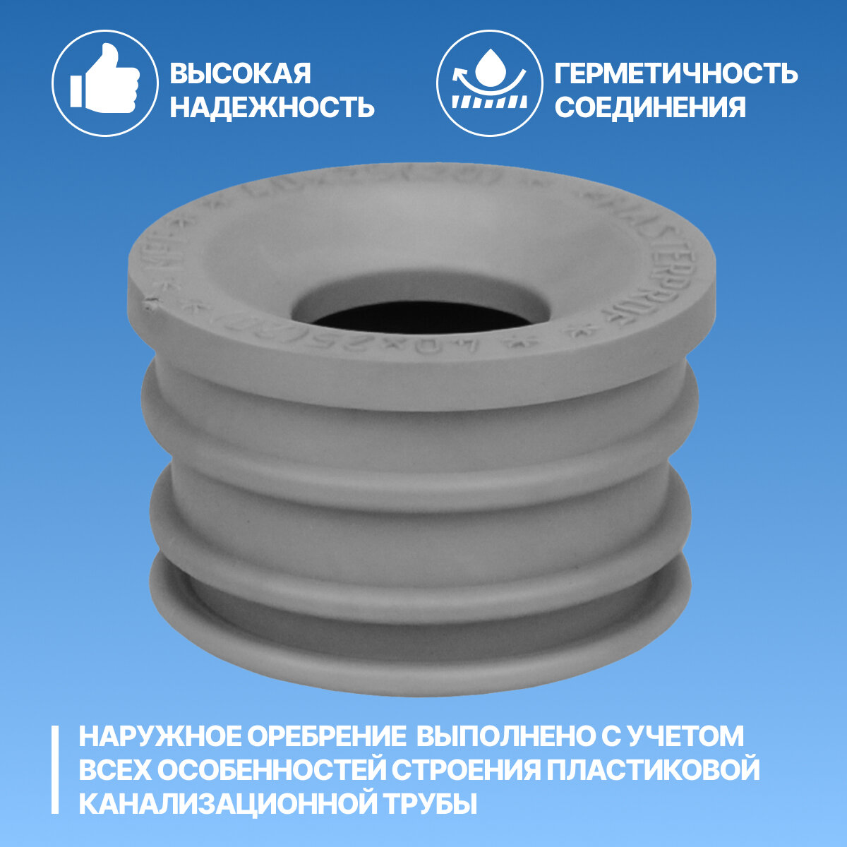 10 цен на Манжета для канализации 40 х 25(20) мм, серая, уплотнительная сантехническая, 2 шт.