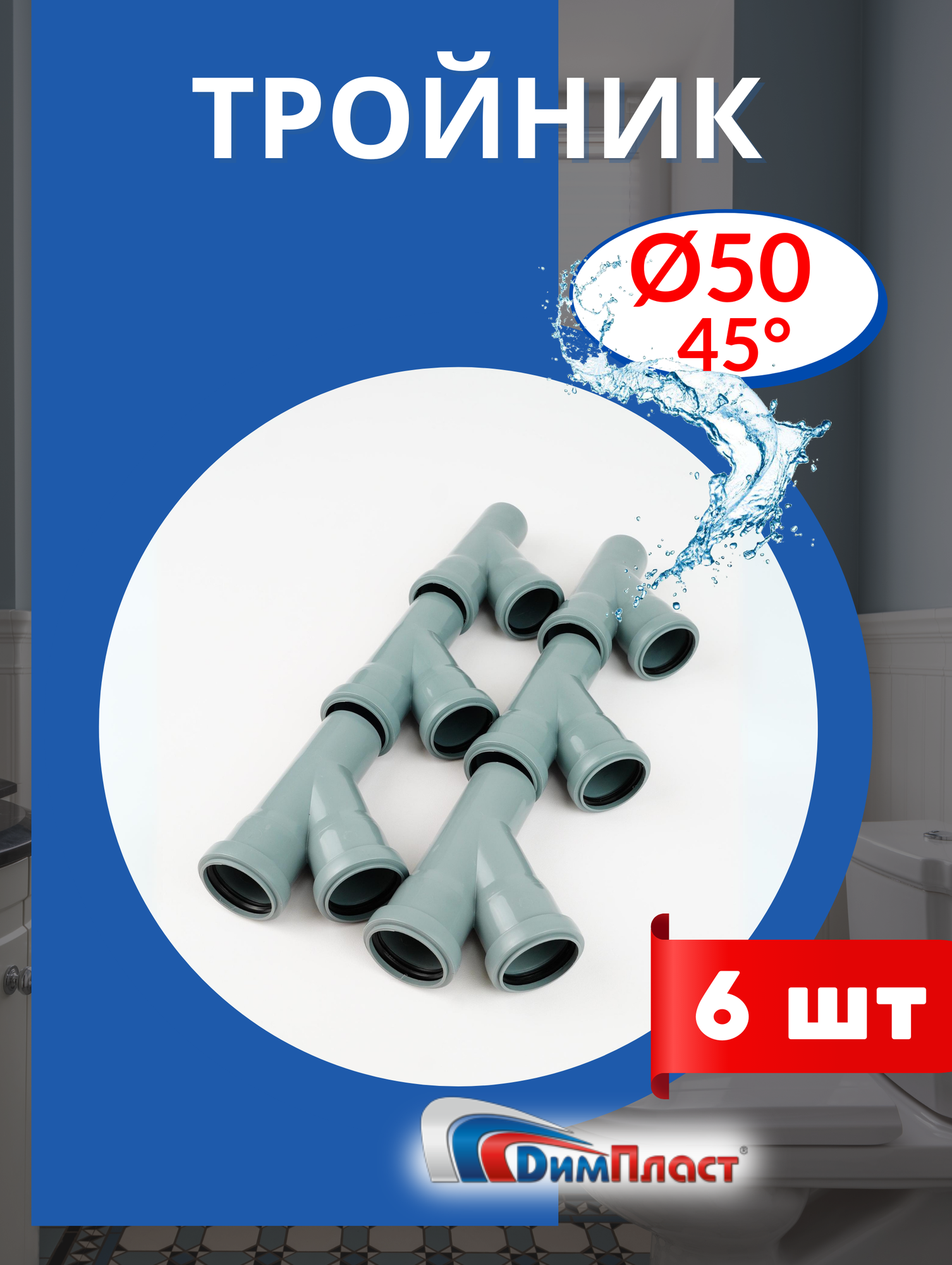 10 цен на Тройник канализационный 50 45 градусов димпласт 6шт.
