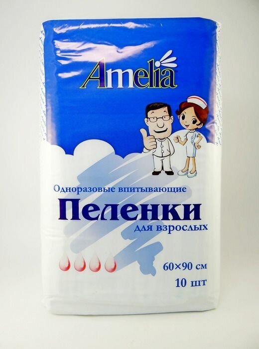 Пеленки медицинские одноразовые впитывающие Amelia для детей и взрослых, 60х90, 10 шт информация: