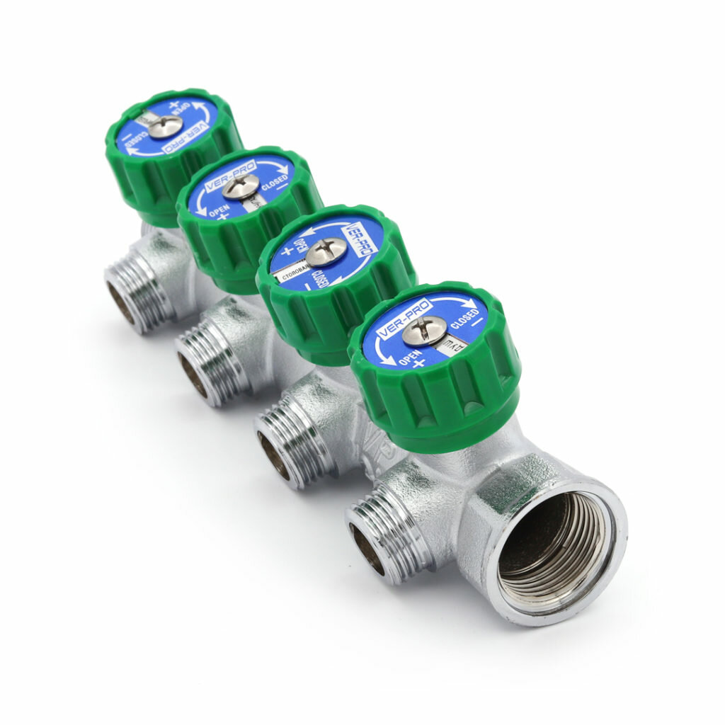 Отзывы на Коллектор 3/4"х1/2"НР - 4 выхода плоский с регулировочными вентилями для водоснабжения хром VER404-A